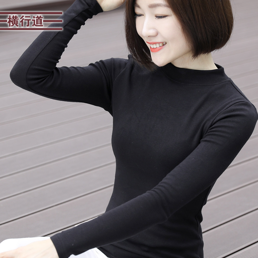 2026春装新款大码胖mm中年妈妈长袖t恤女装简约半高领打底衫上衣
