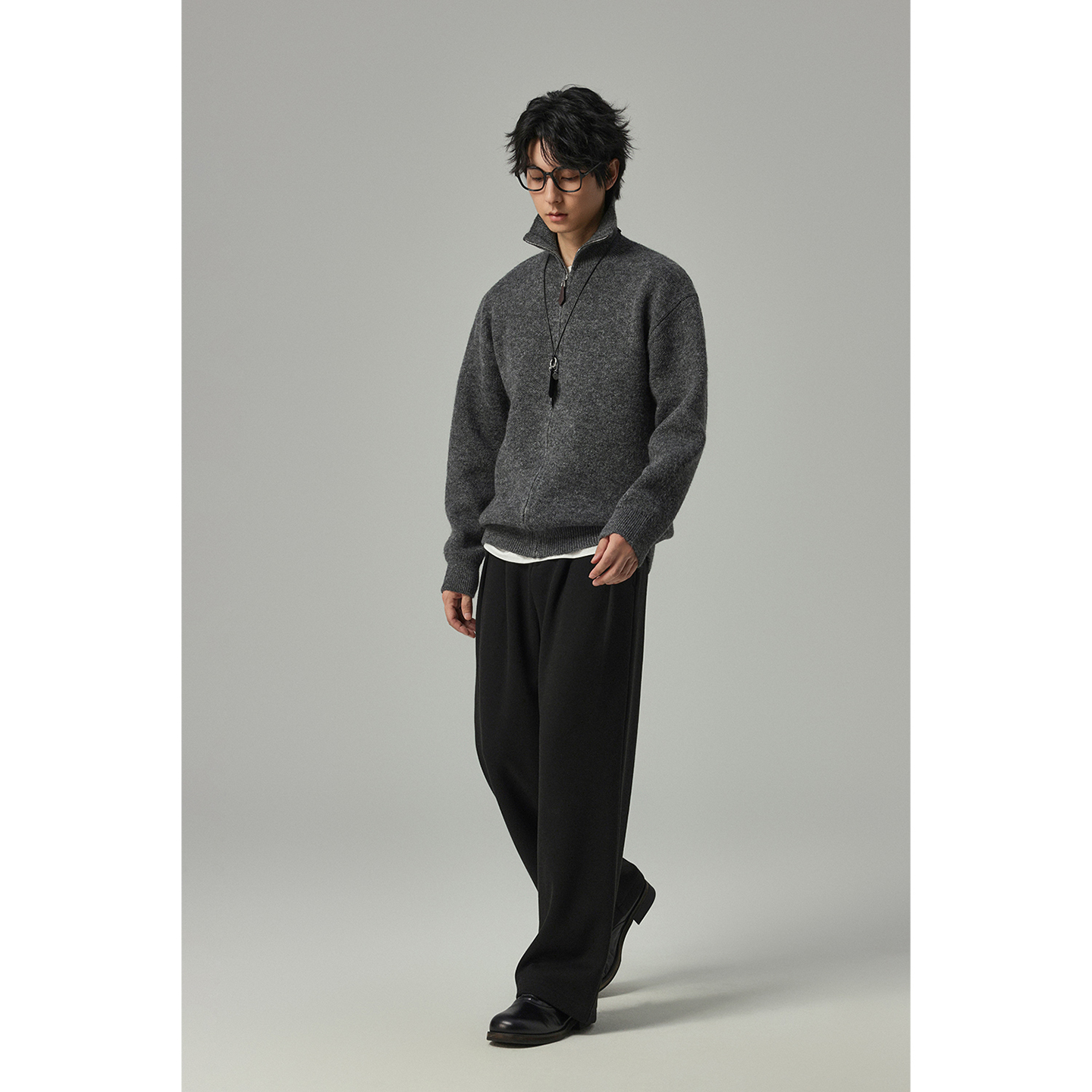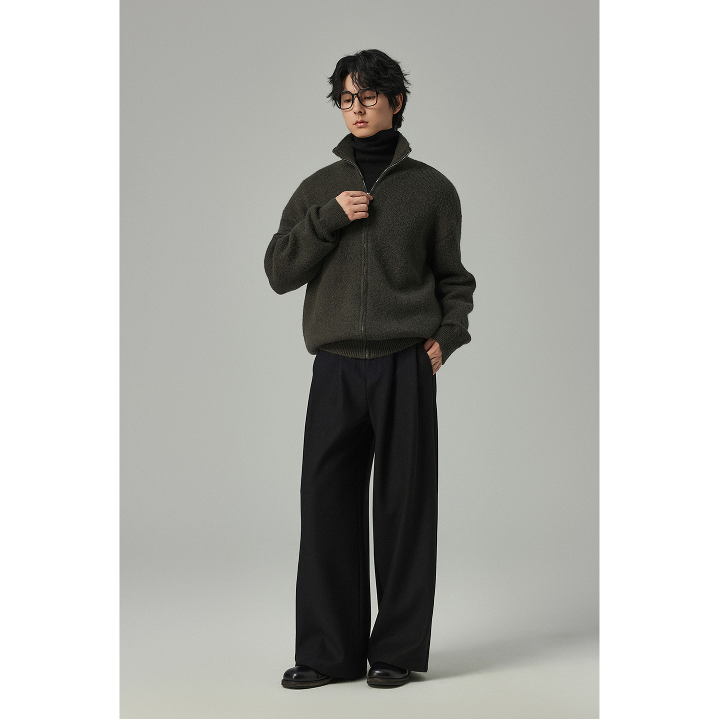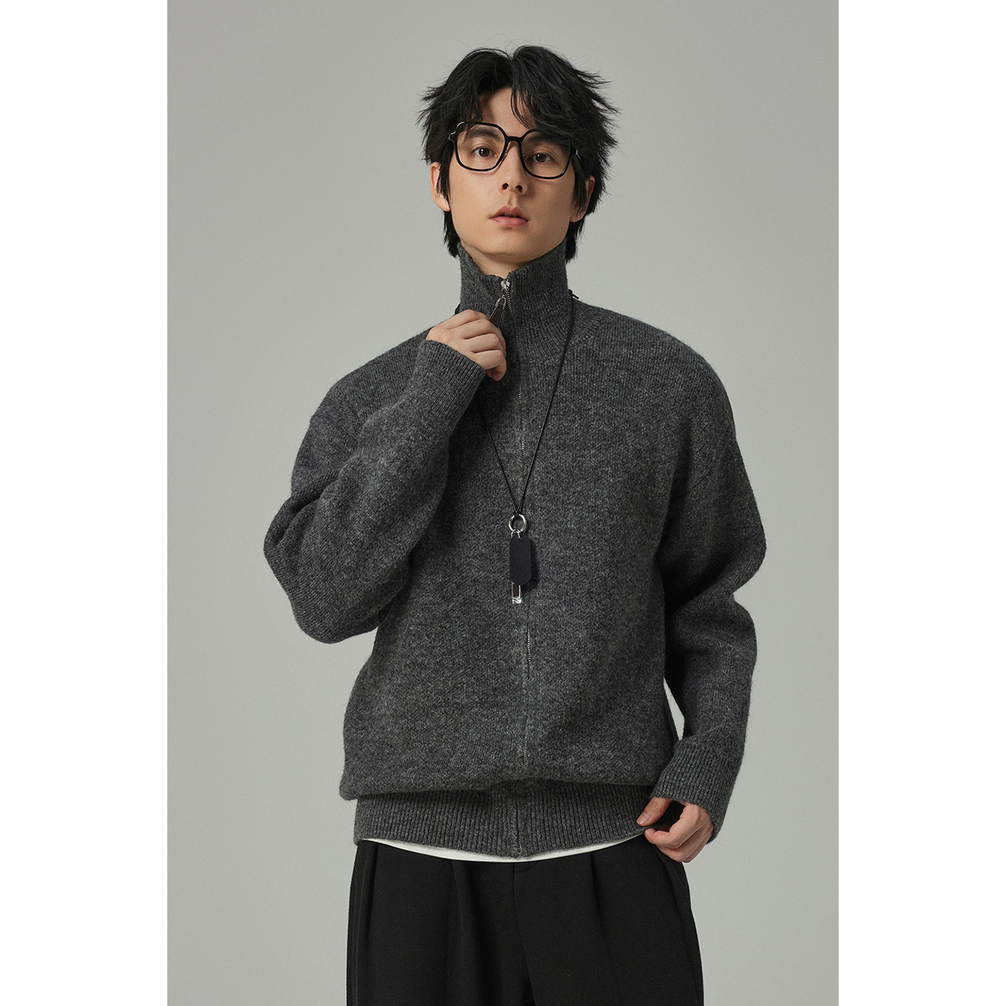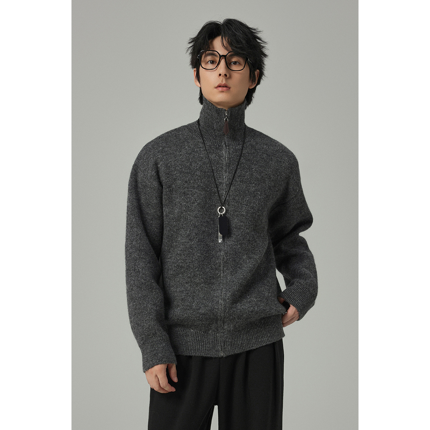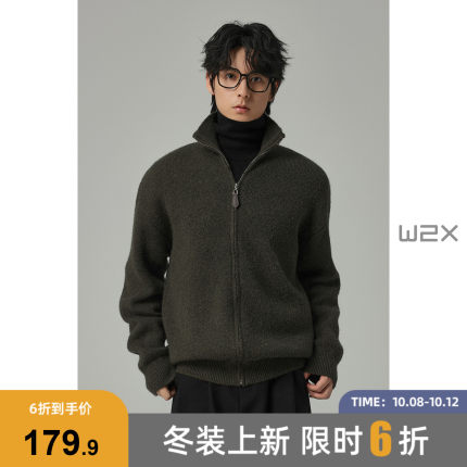 w2x秋冬季立领马海毛羊毛针织开衫男拉链高级感痞帅休闲毛衣外套