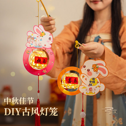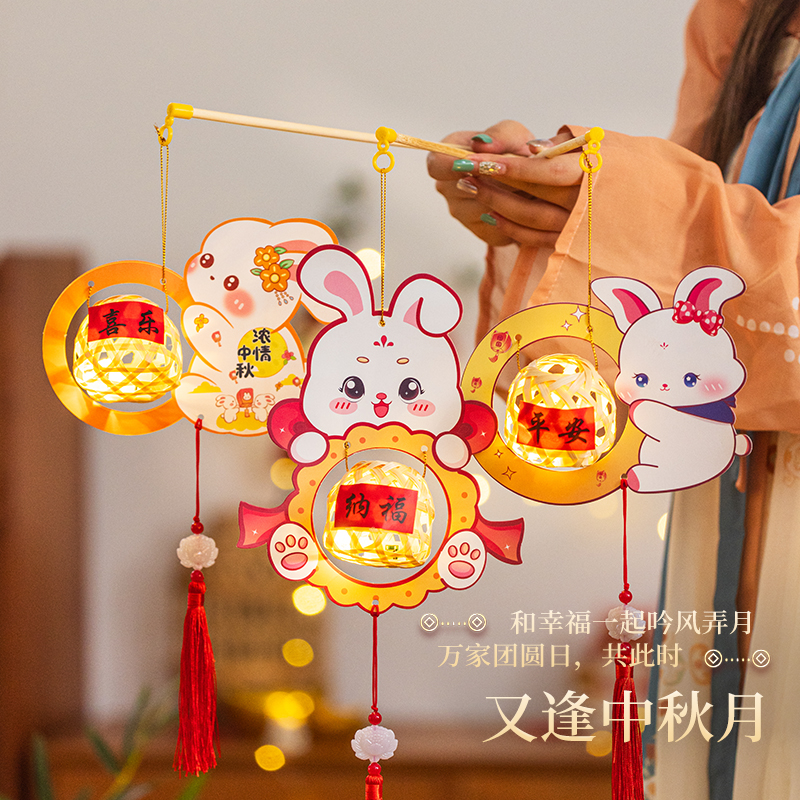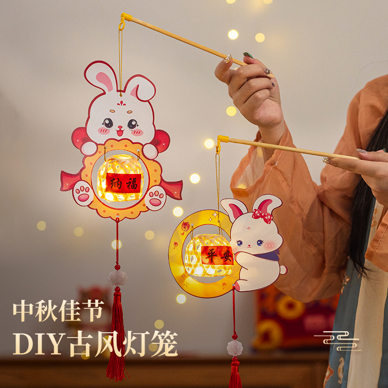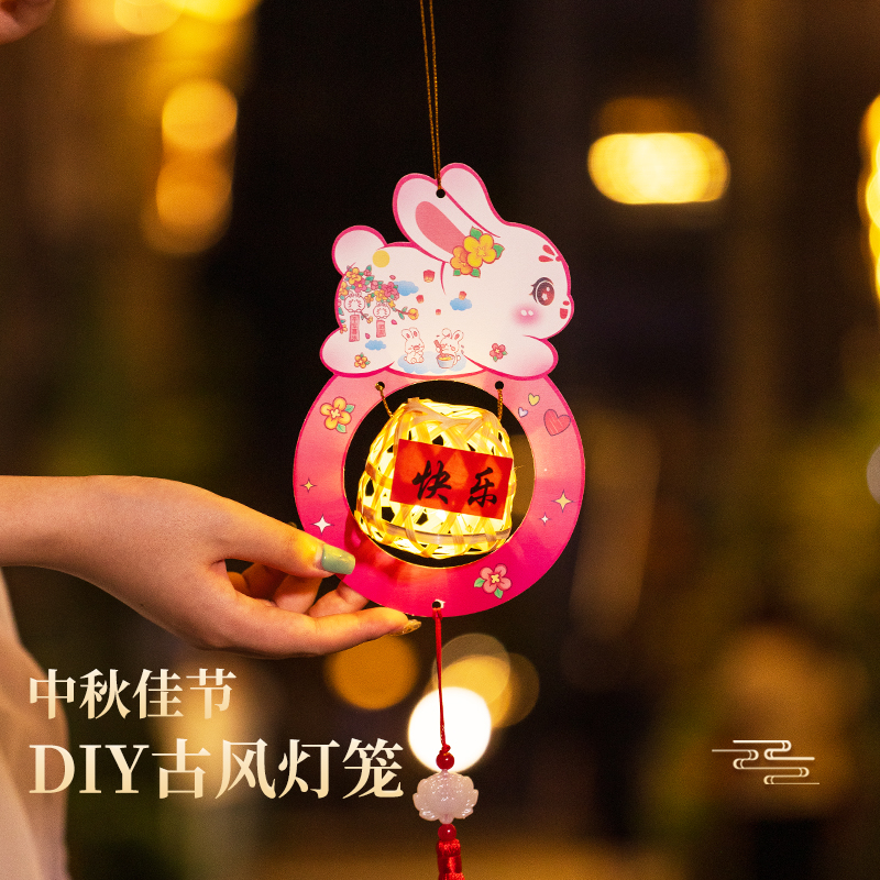 2025新款中秋节灯笼古风竹编花灯儿童手工diy材料包手提挂饰装饰