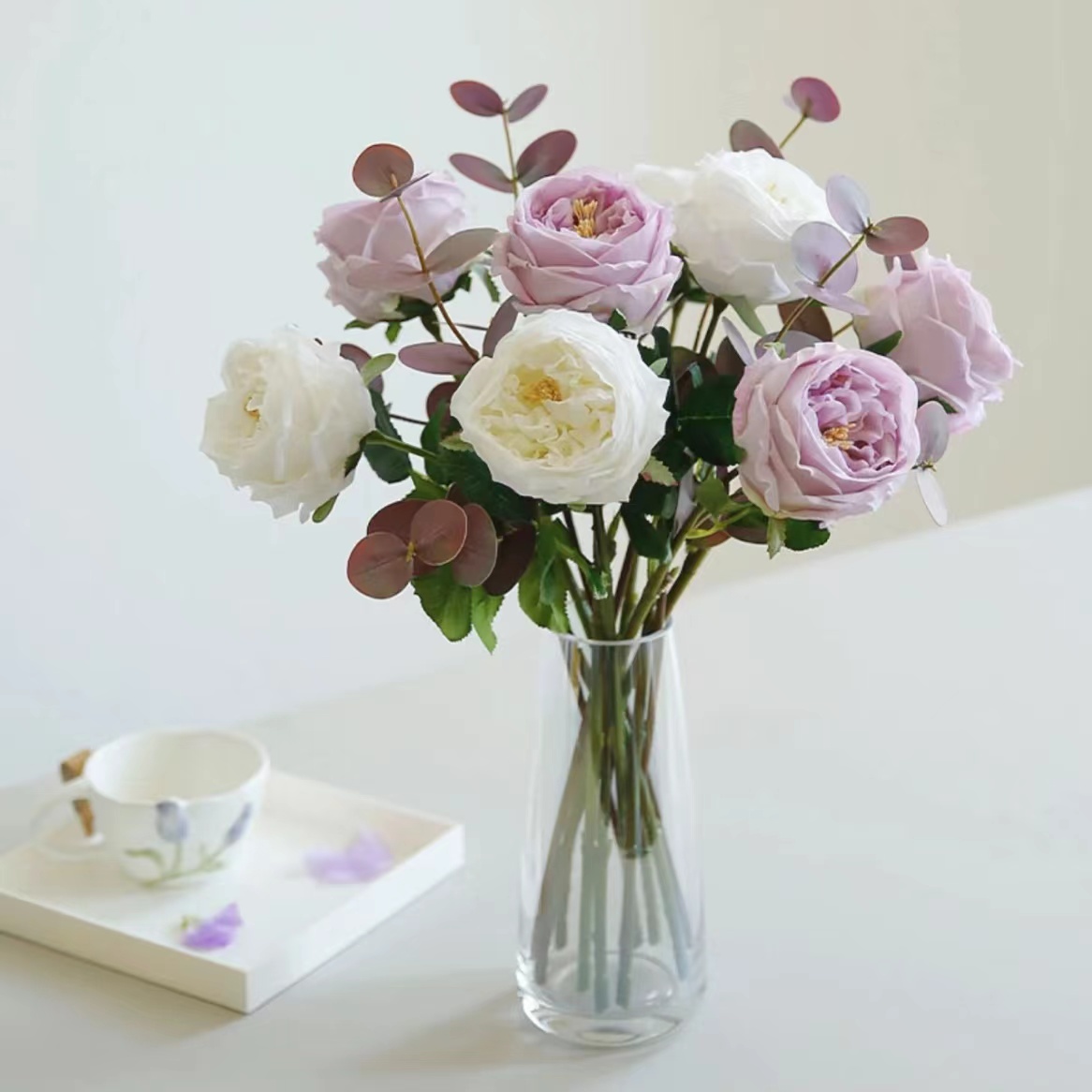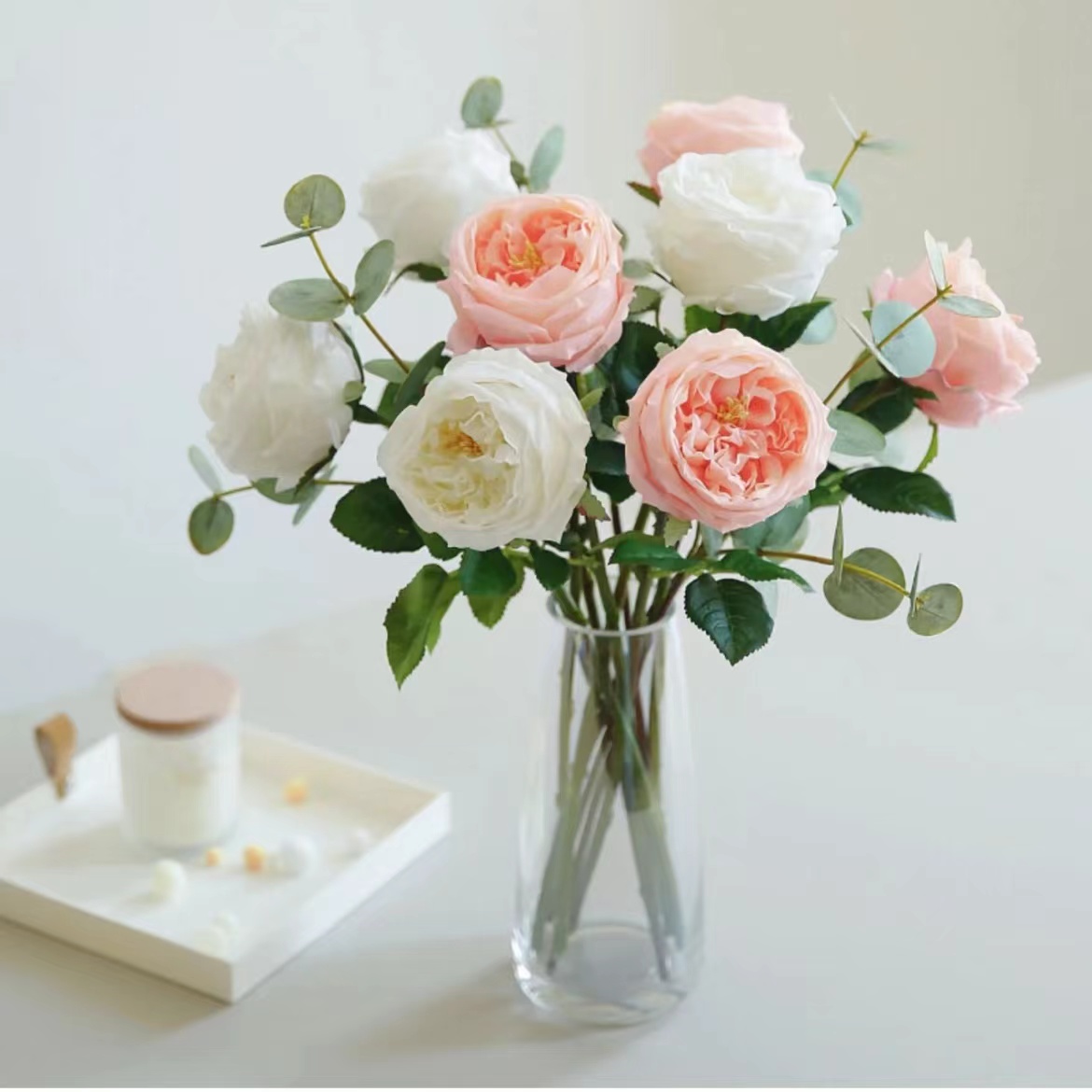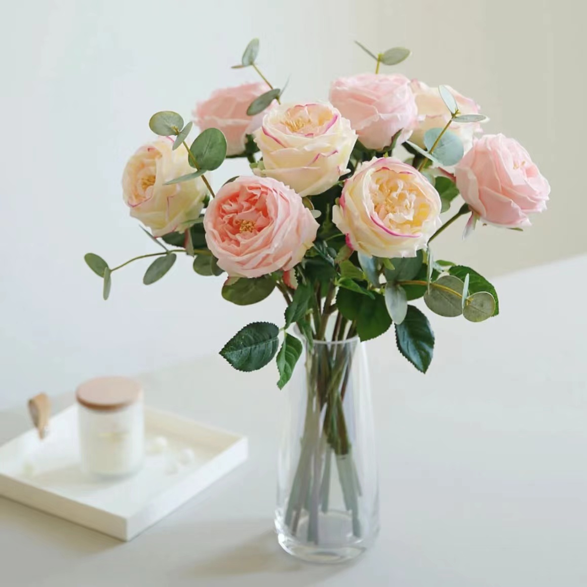 湿感奥斯汀玫瑰花仿真花摆件客厅餐桌假花仿真花摆设玄关装饰插花