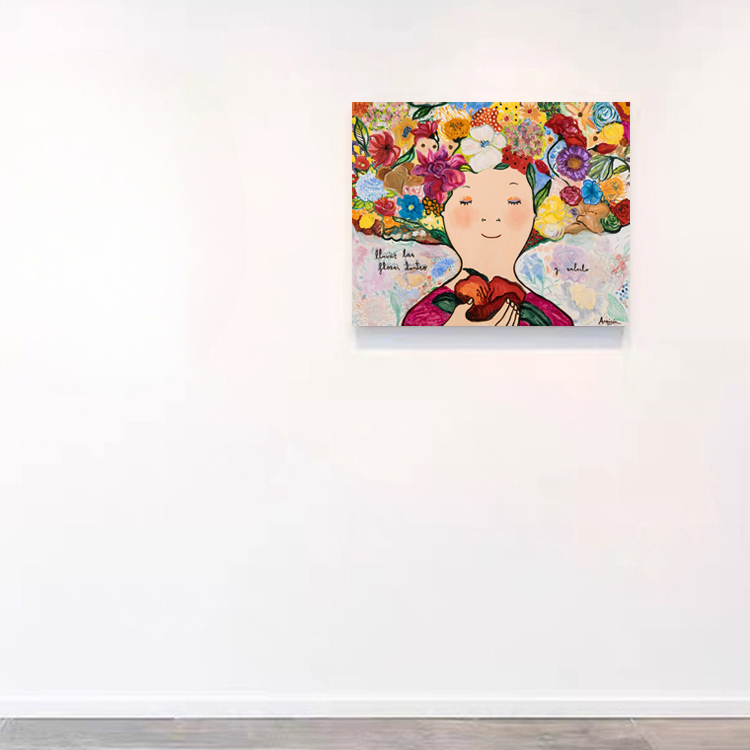 《在鲜花里》风景人物画描述幸福的装饰挂画横款简约无框画 EA