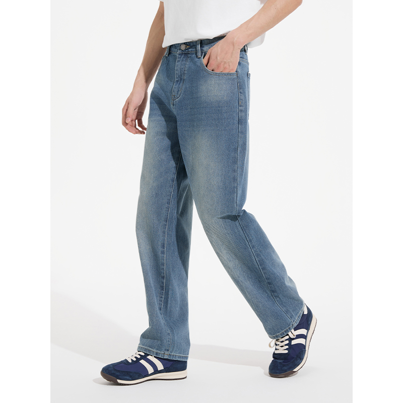 热风牛仔裤2025年夏季新款男士宽松直筒牛仔裤复古美式牛仔长裤