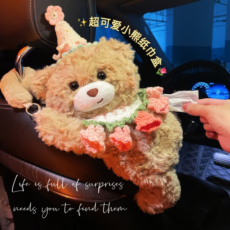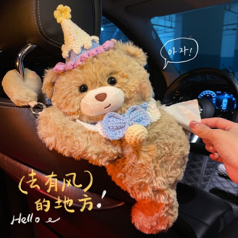 车载纸巾盒汽车纸抽盒创意可爱蓝冰淇淋公主车内收纳挂袋毛绒玩偶