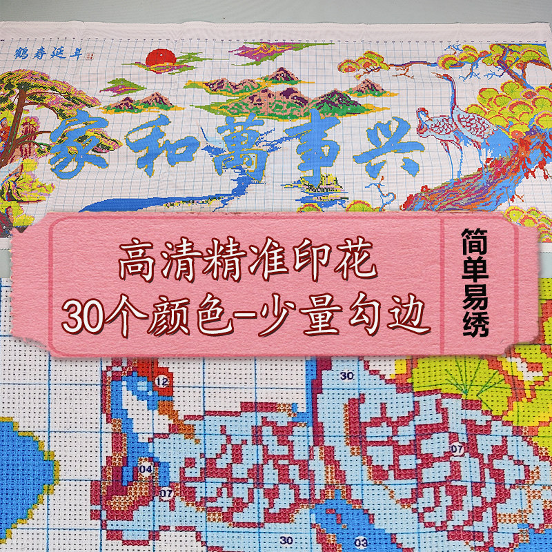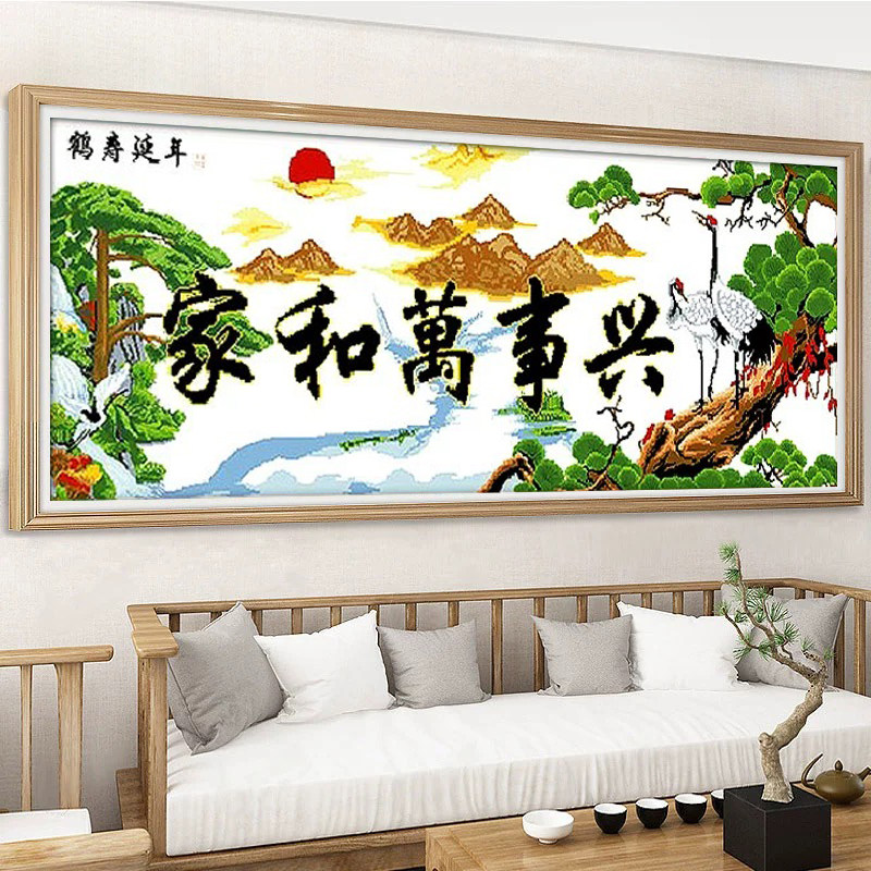 家和万事兴2025年新款自己手工刺绣十字绣线绣简单大气客厅迎客松