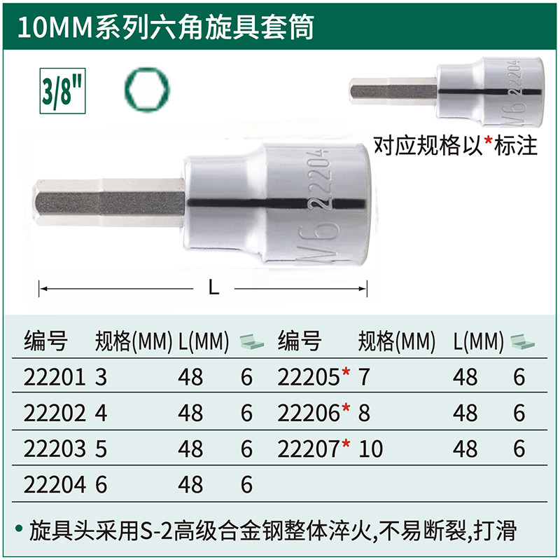 世达10MM六角旋具套筒批头22201 22202 22203 22205 22206 22207