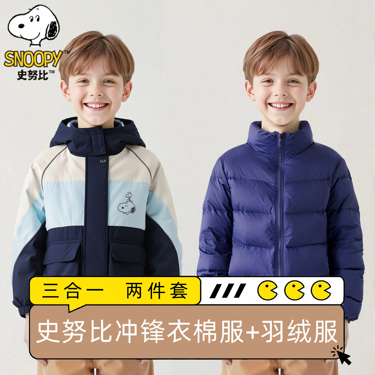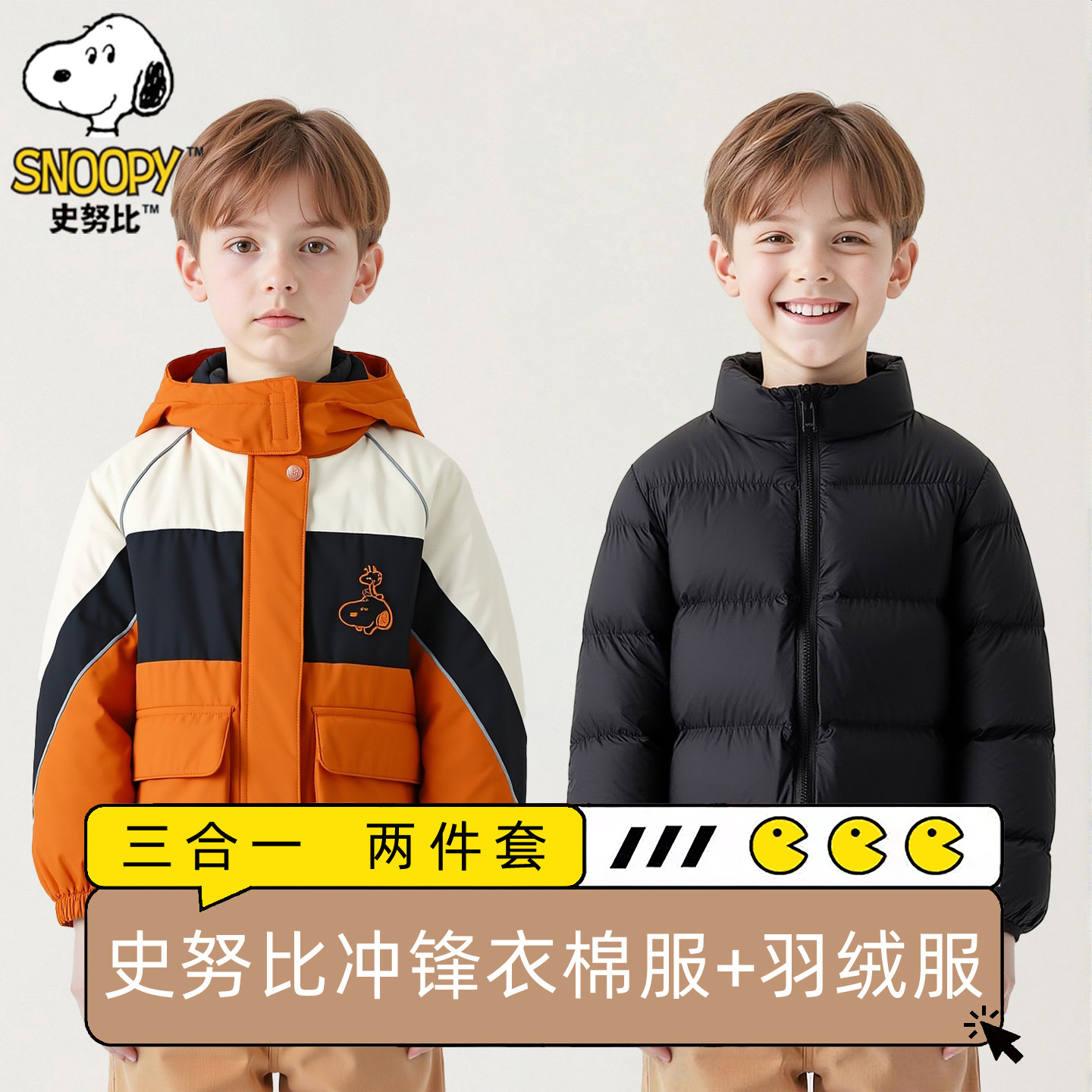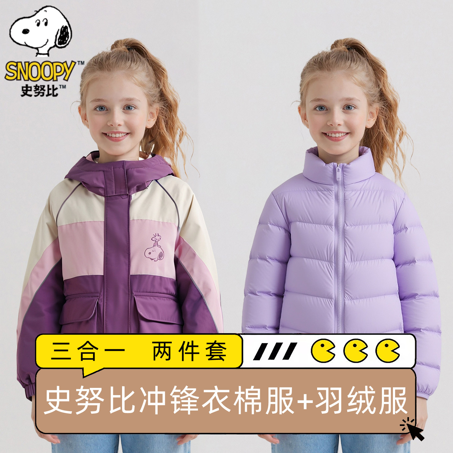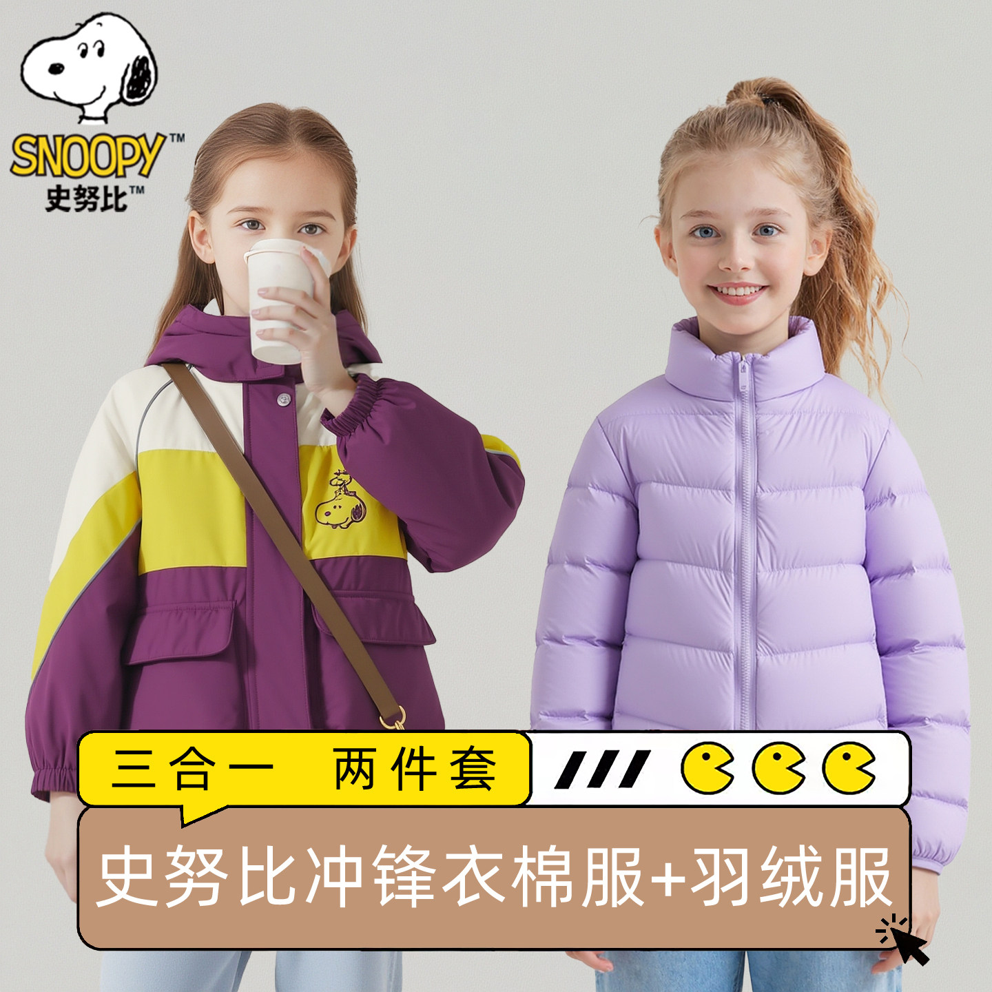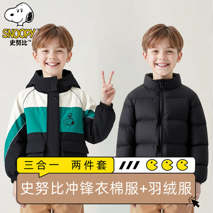史努比儿童可拆卸羽绒服冬装女童棉服男童户外中大童三合一冲锋衣