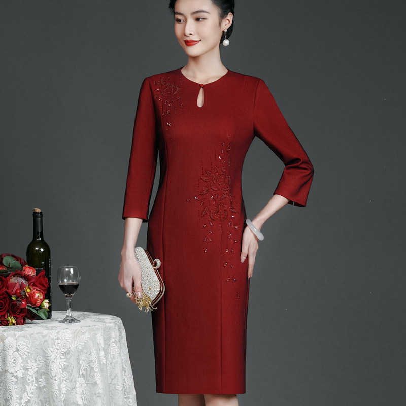女儿结婚礼妈妈装连衣裙2026春装小个子喜婆婆婚宴礼服旗袍裙喜服