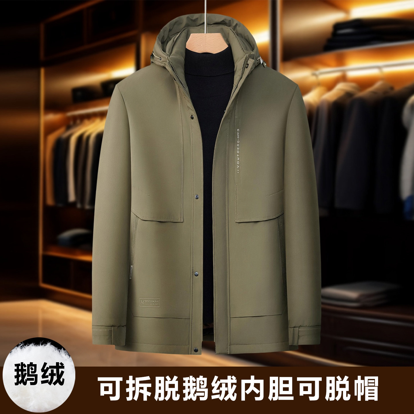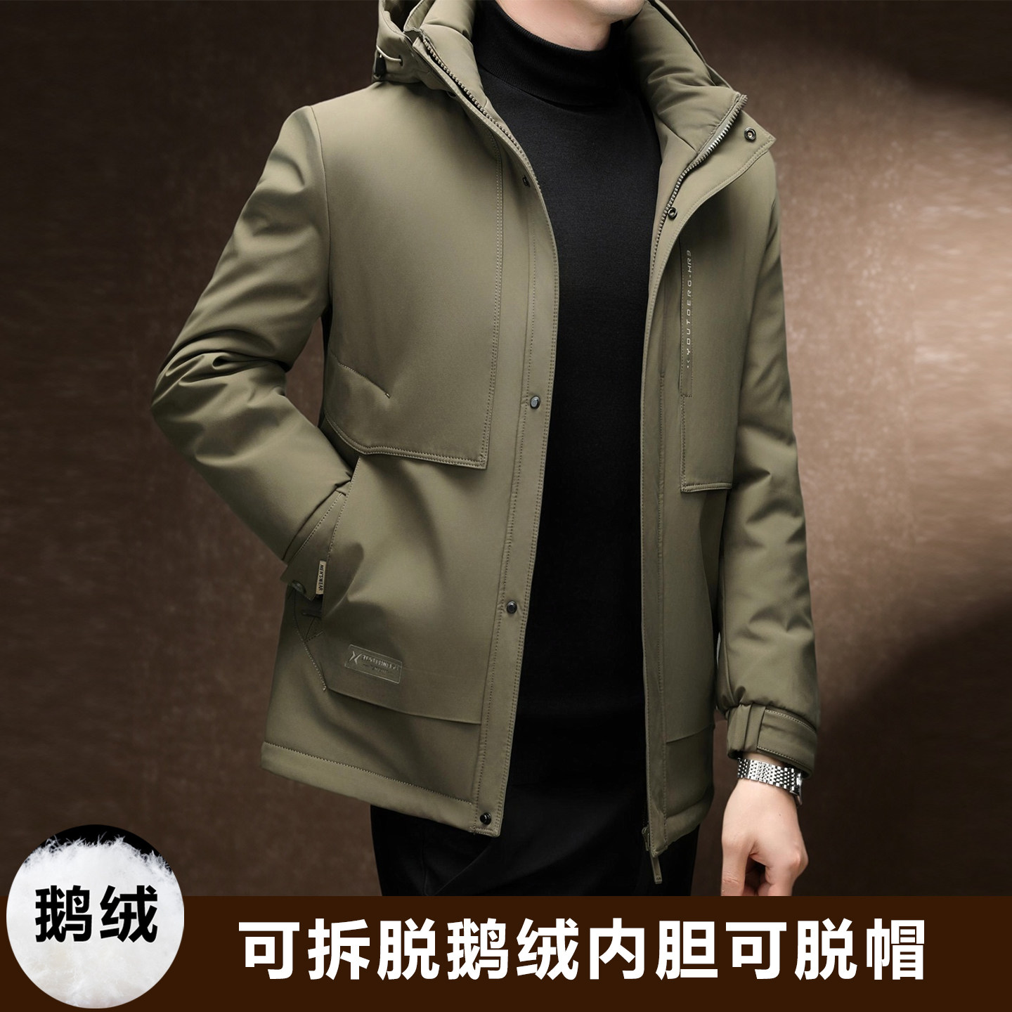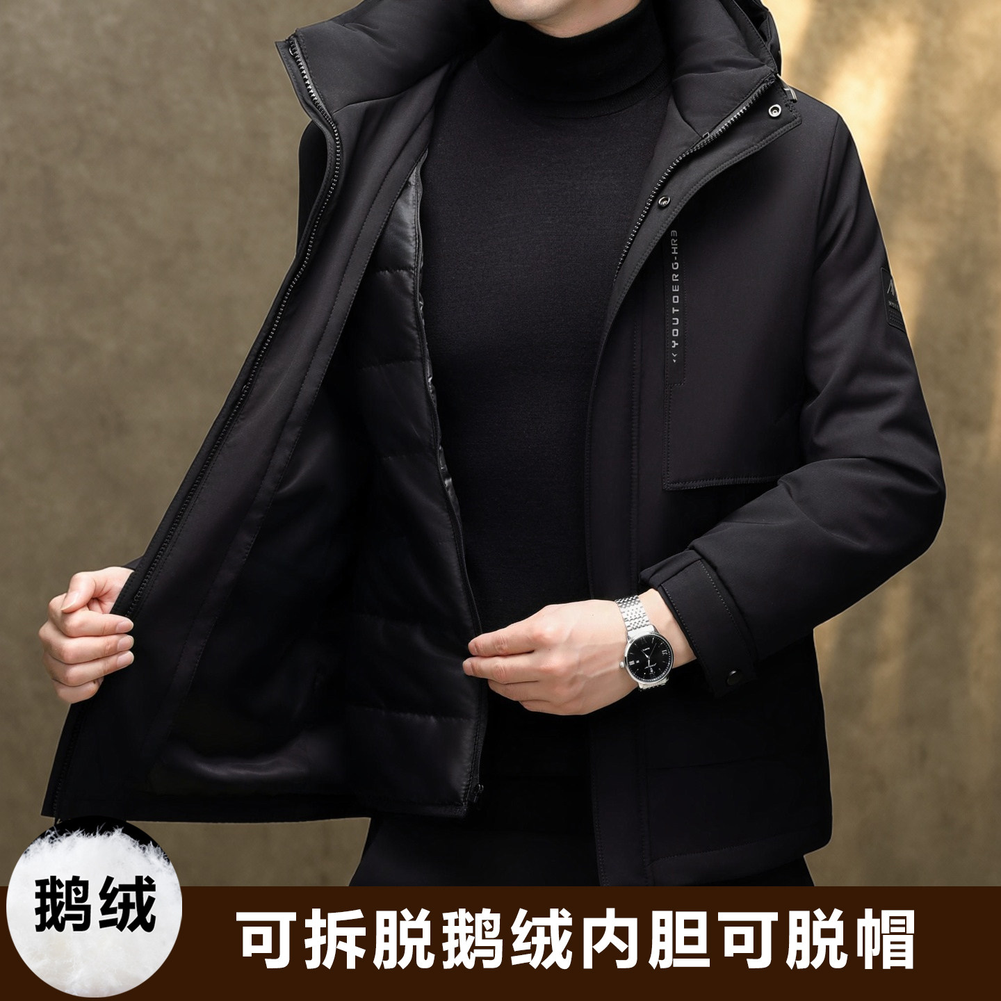 男款羽绒服冬季高级感连帽可拆卸鹅绒内胆三合一户外防寒服冲锋衣