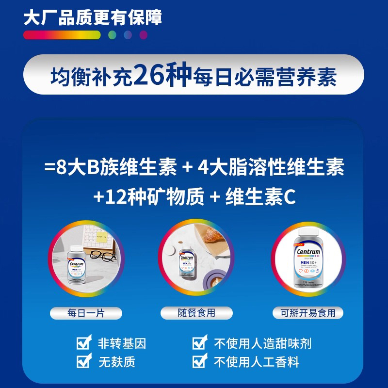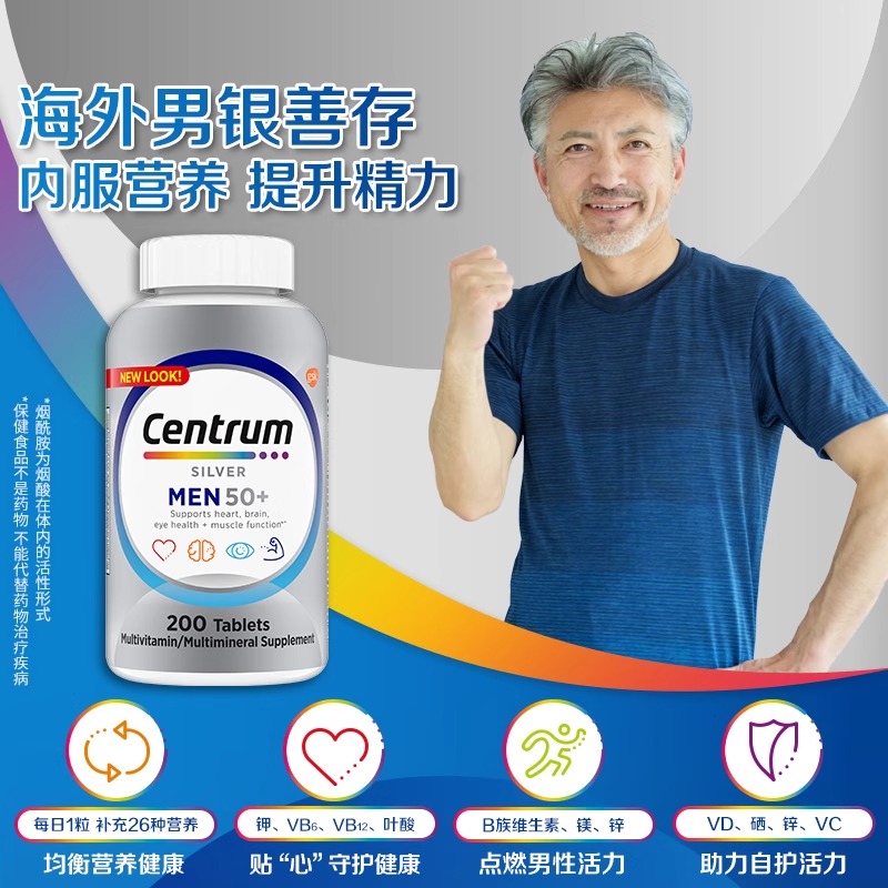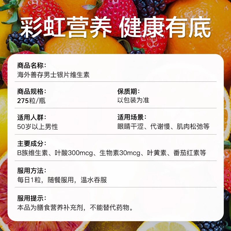 美国善存银片男士50岁中老年复合维生素片B族d3维C番茄红素275粒