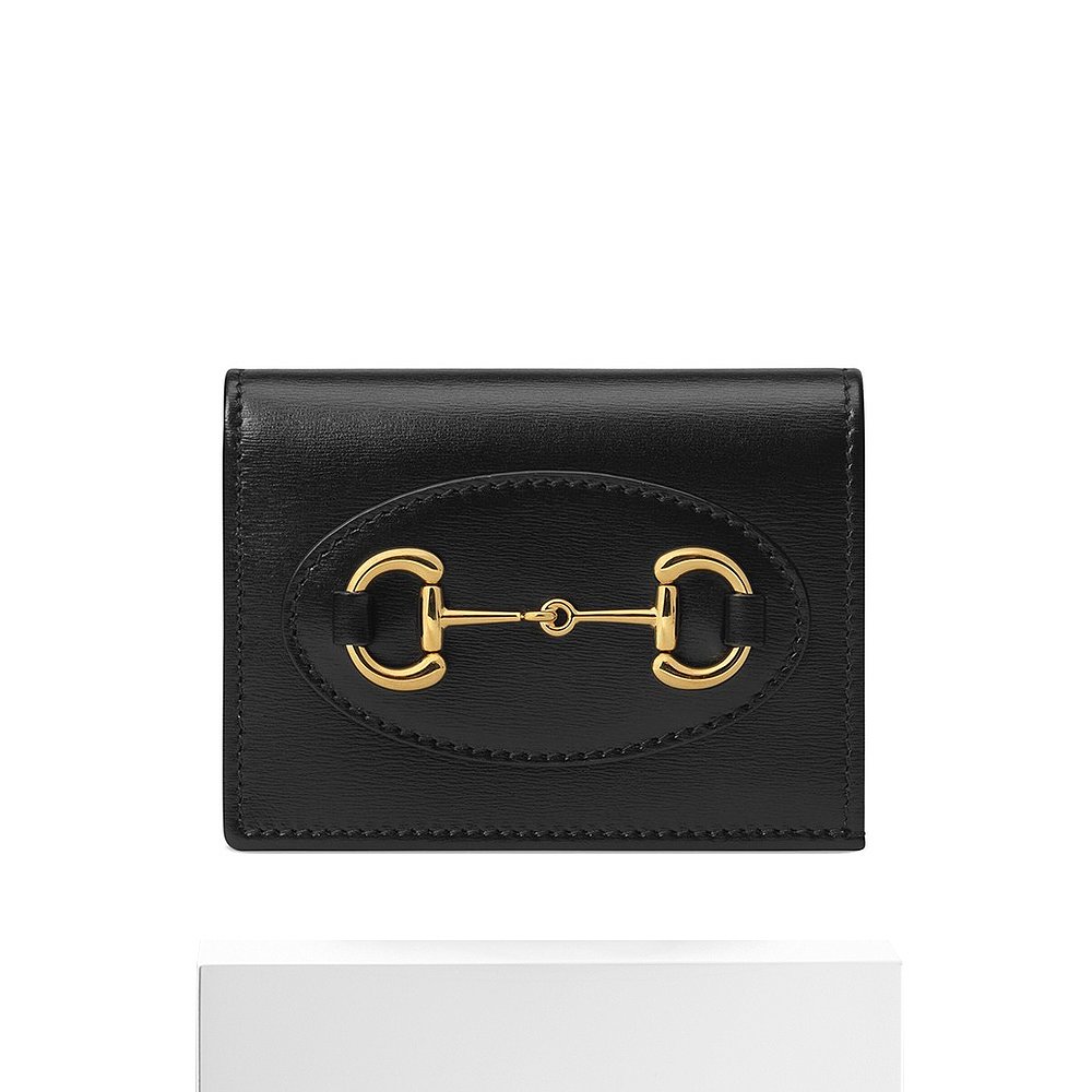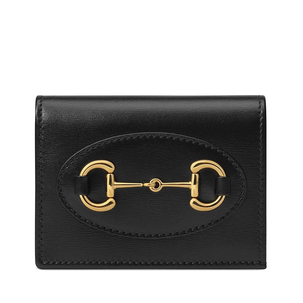 自营GUCCI/古驰 经典Horsebit 1955系列 黑色小牛皮折叠按扣钱包