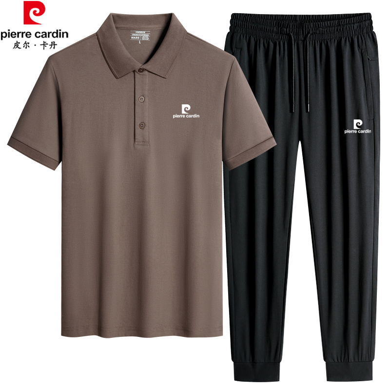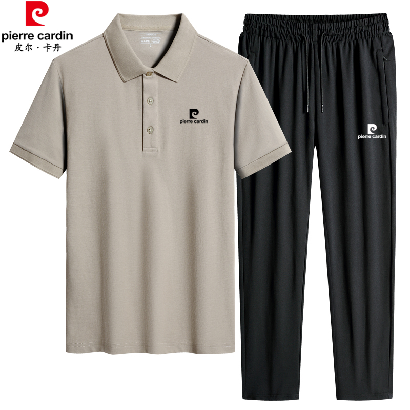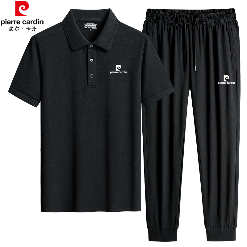 皮尔卡丹爸爸运动套装男夏季宽松透气中老年休闲短袖POLO衫两件套