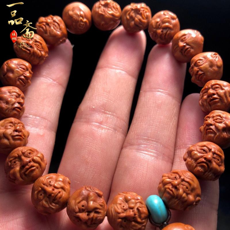 正圆十八罗汉手串男士文玩桃核龙纹核桃雕刻核雕18罗汉橄榄核小籽