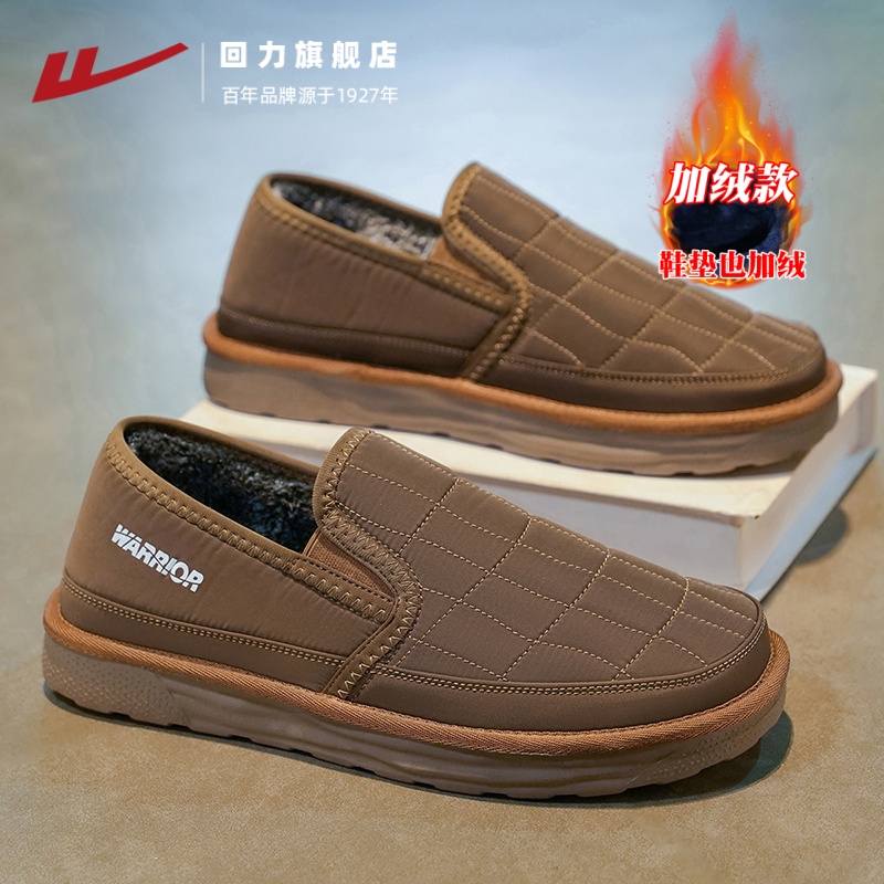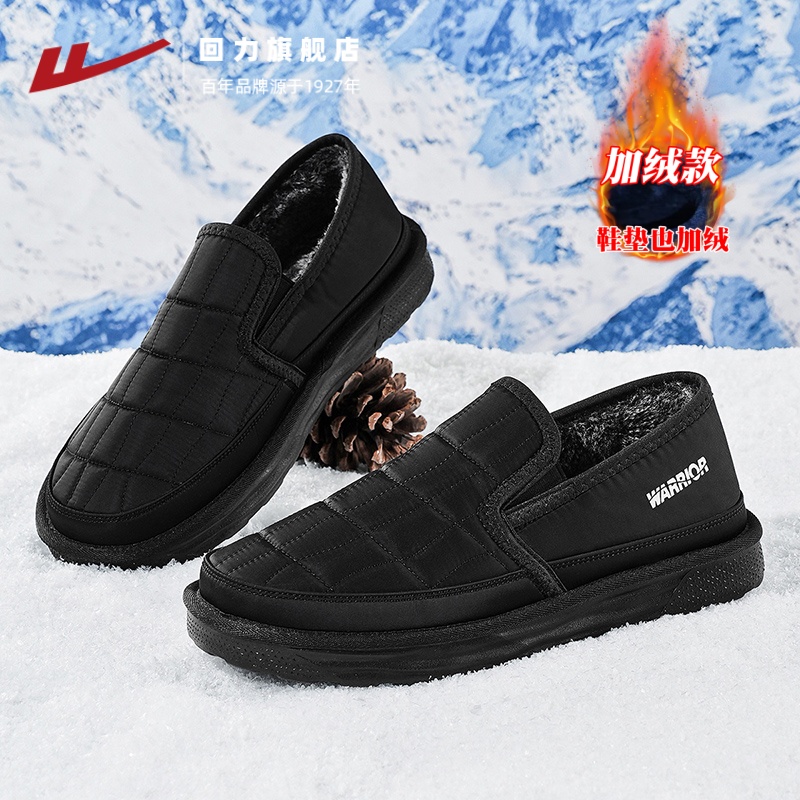 回力冬季棉鞋男款加绒保暖老北京布鞋一脚蹬防寒中老年老人爸爸鞋