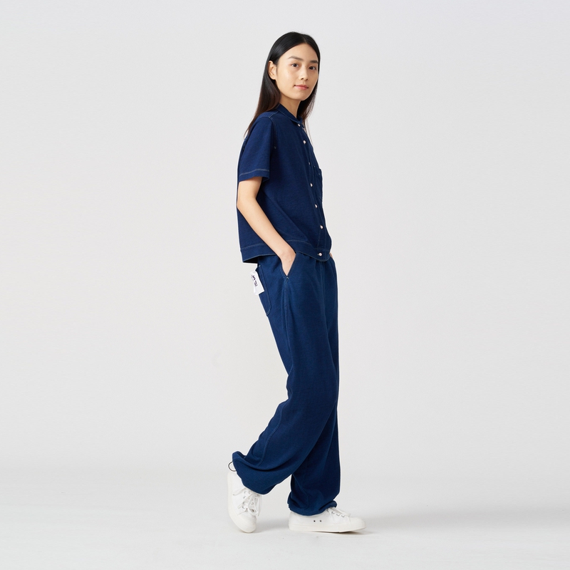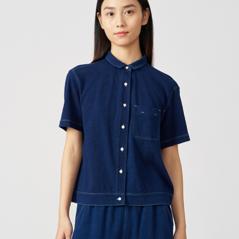 klee休闲棉靛蓝染针织短袖衬衫