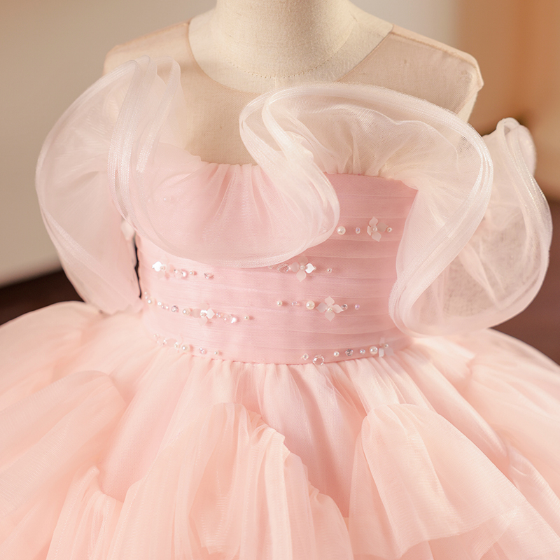 女童礼服公主裙粉色蓬蓬裙生日主持人走秀钢琴演出服洋气花童短裙