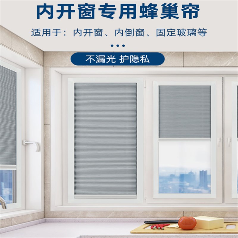 带框内置嵌入式i内开内倒窗全遮光窗帘遮阳免打孔卫生间防水蜂巢