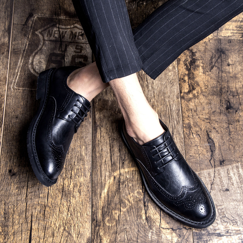 皮鞋男布洛克英伦休闲潮流商务正装内增高大码青年西装婚礼鞋男鞋