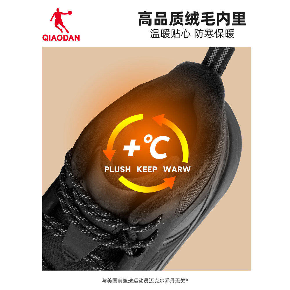 乔丹加绒户外徒步运动鞋棉鞋女春季新款保暖厚底防滑大棉登山鞋女