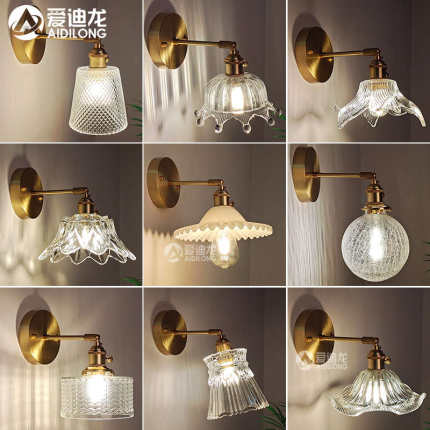 日式复古黄铜壁灯现代北欧床头壁灯简约卫生间浴室镜镜前灯