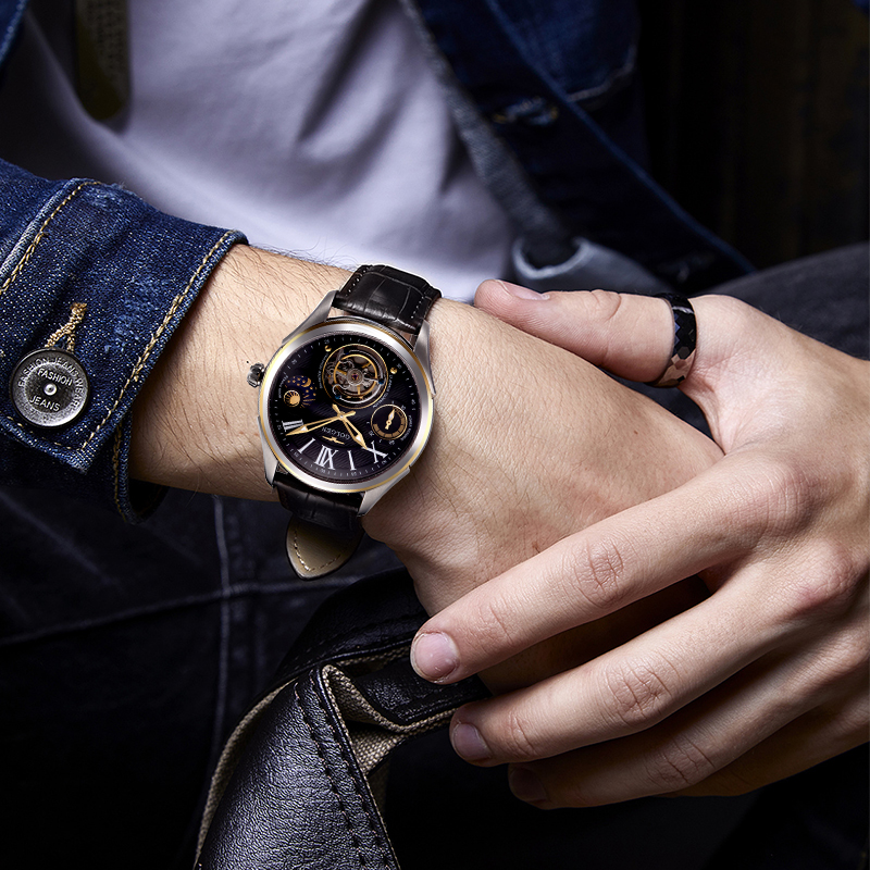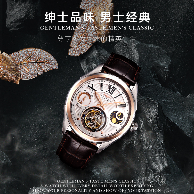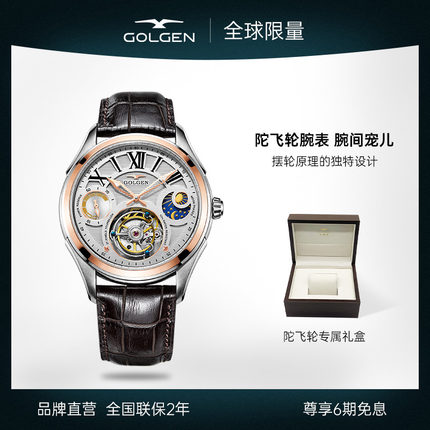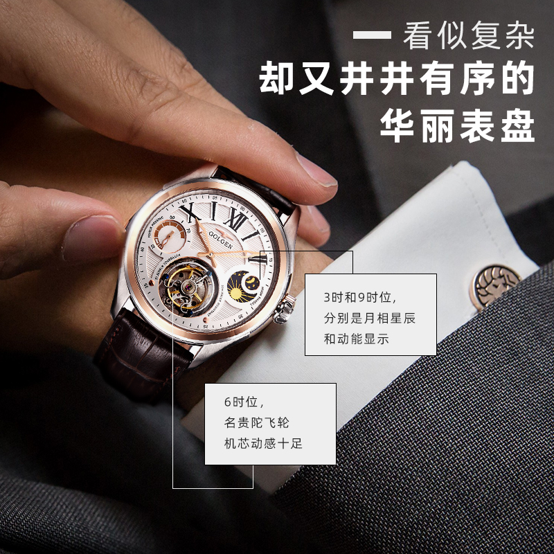 Golgen古尊手表男陀飞轮镂空皮带男表机械官方正品男士腕表T001