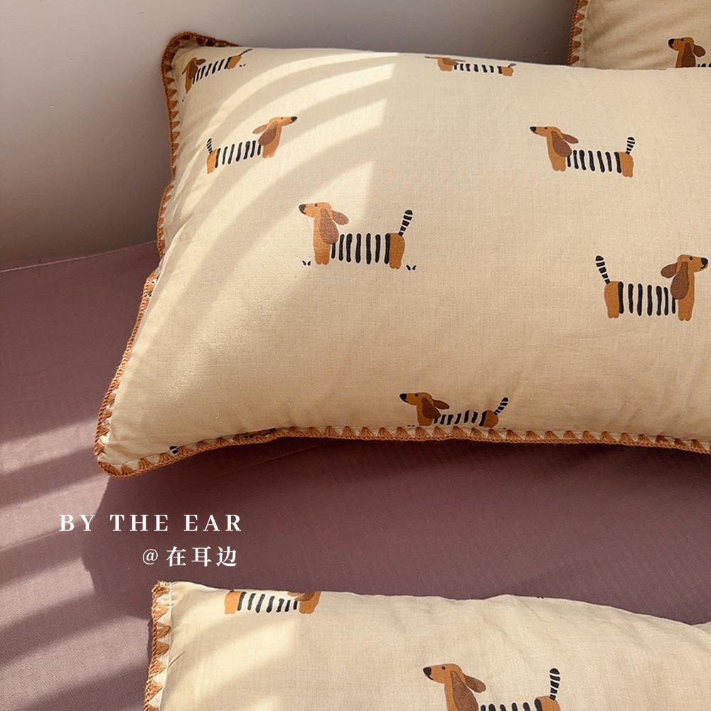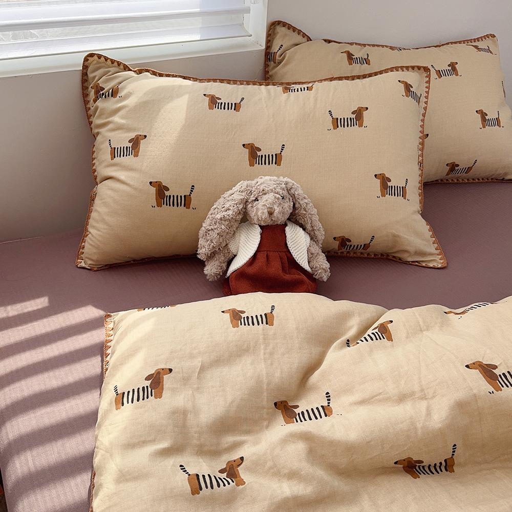 腊肠小狗|ins风双层纱四件套全棉纯棉1.5m1.8米被套床单床上用品