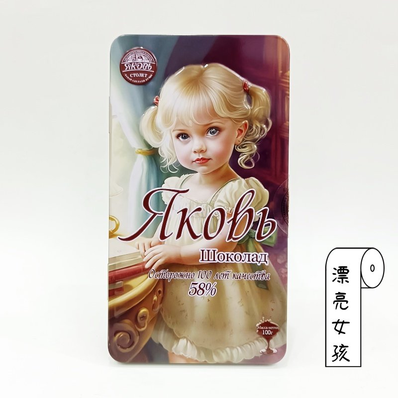 俄罗斯风情斯巴系巴58%臻黑巧克力天使套娃城堡女孩动物100克铁盒