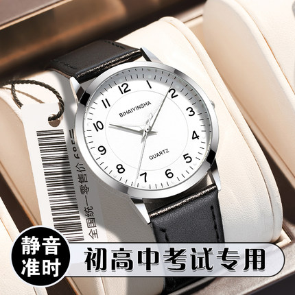 静音考试专用手表男款男生初高中学生儿童女孩女款指针考研用防水