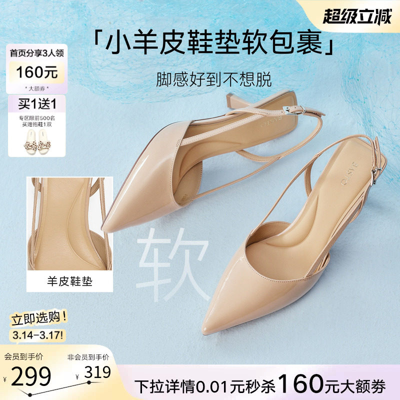 百思图2026夏季新款通勤包头细跟高跟鞋尖头女后空凉鞋F5301BH6