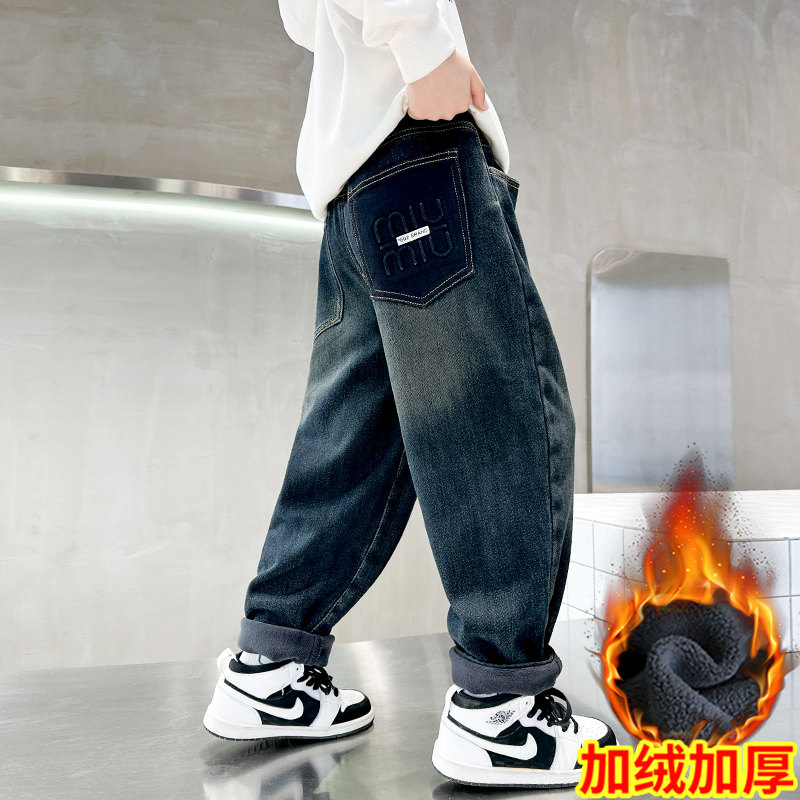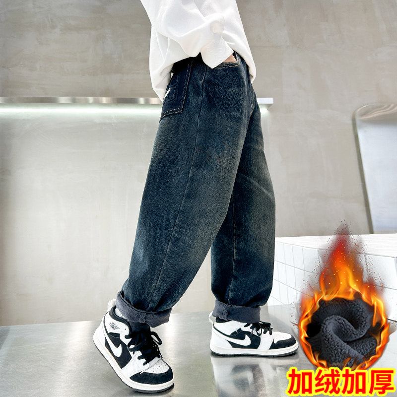 男童秋冬加绒牛仔裤2025新款