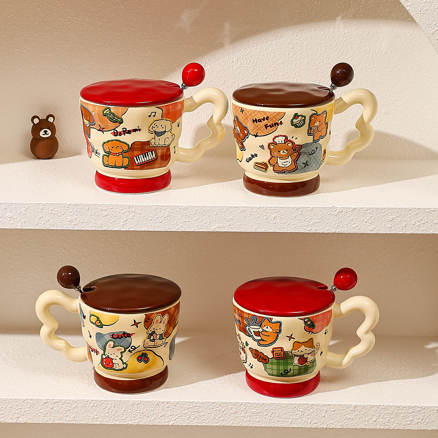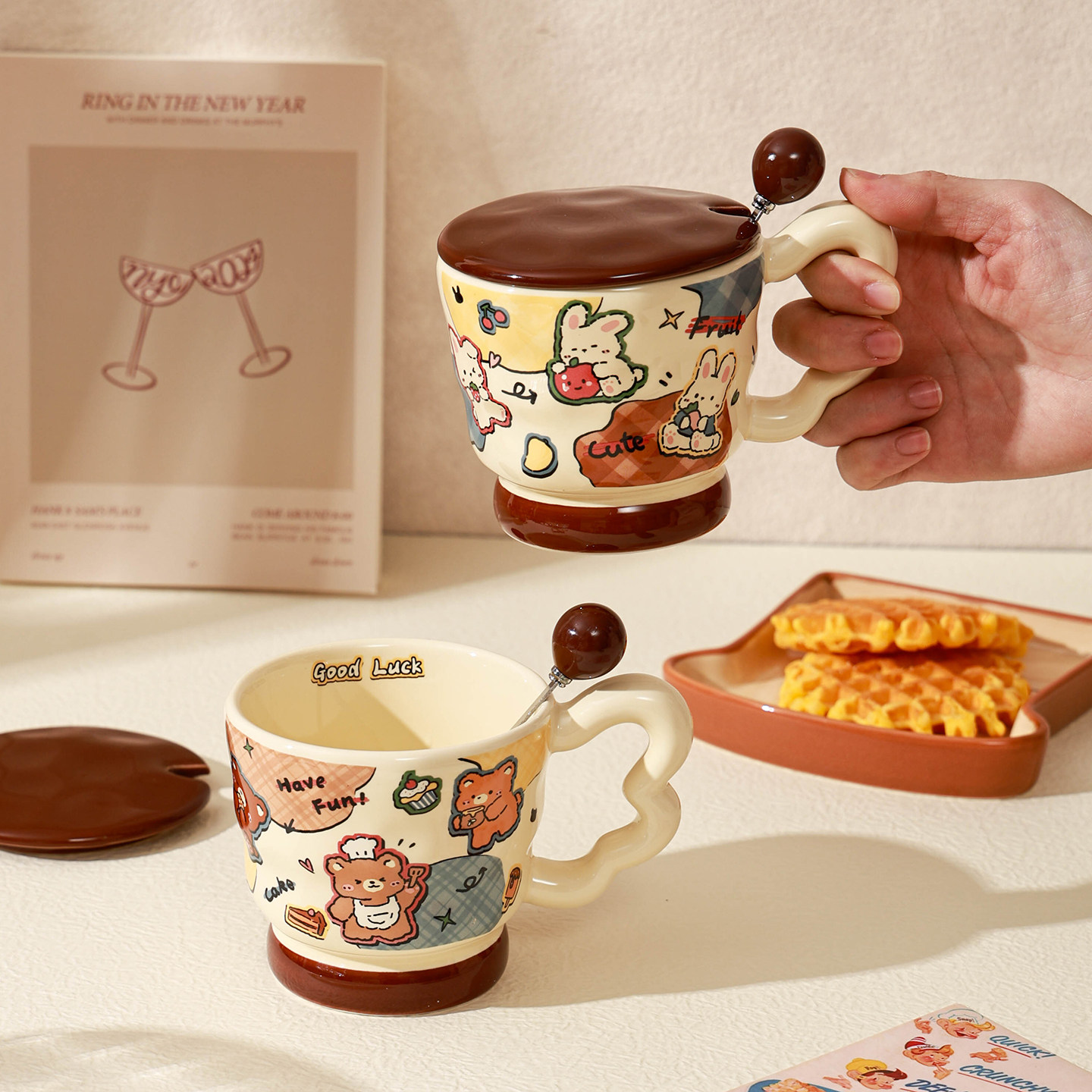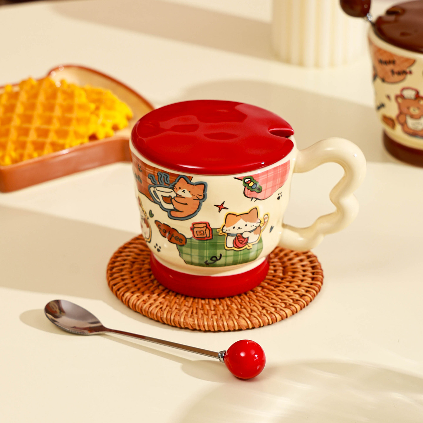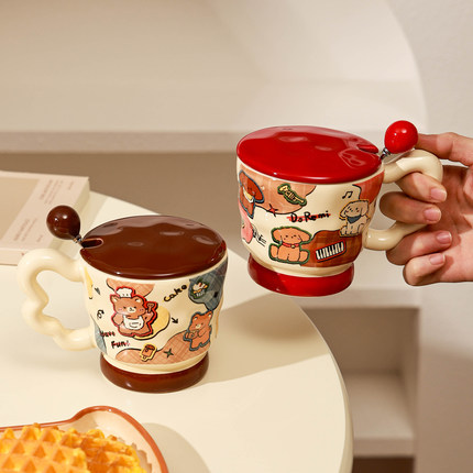 鹿谷川创意釉下彩陶瓷杯子情侣喝水杯下午茶带盖勺的咖啡杯马克杯