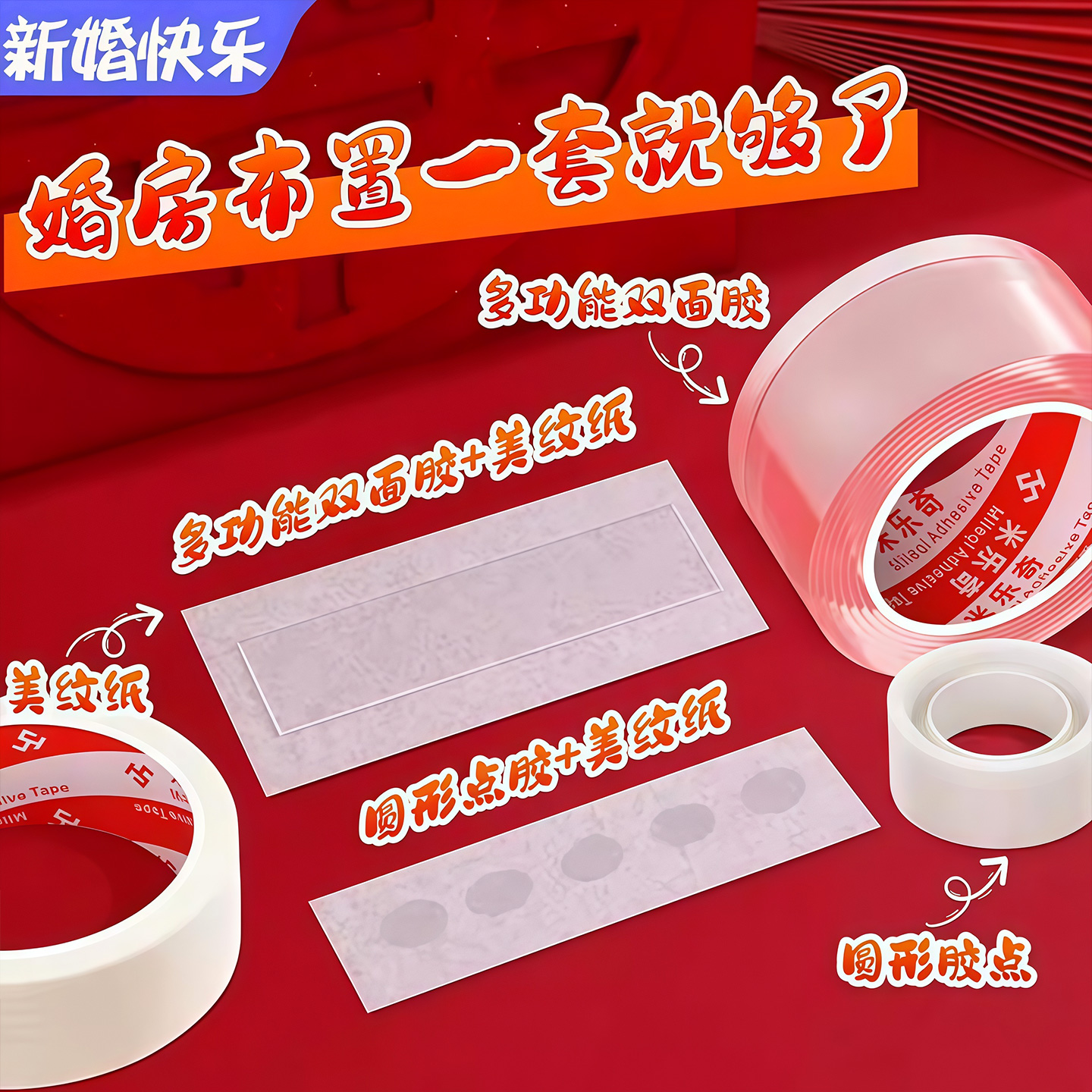 结婚不伤墙方案无痕双面胶美纹纸加纳米胶多功能魔力胶婚房用品