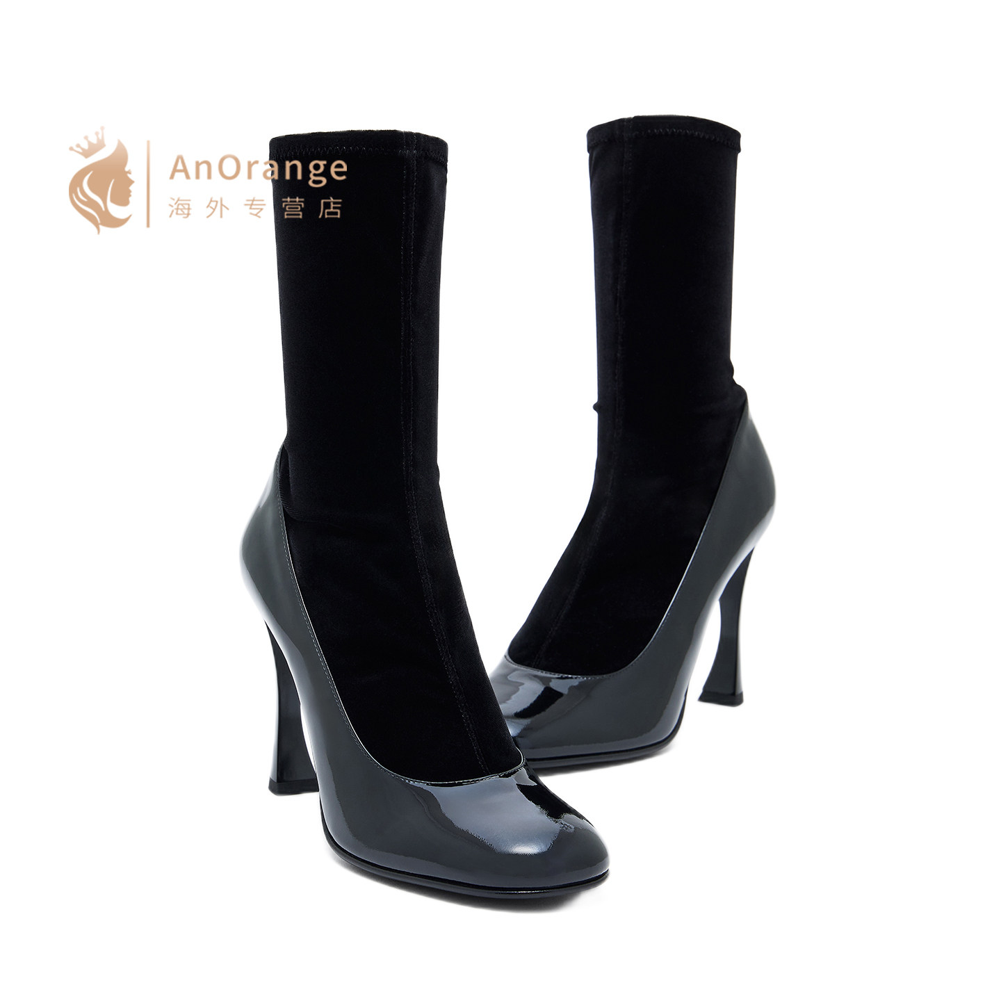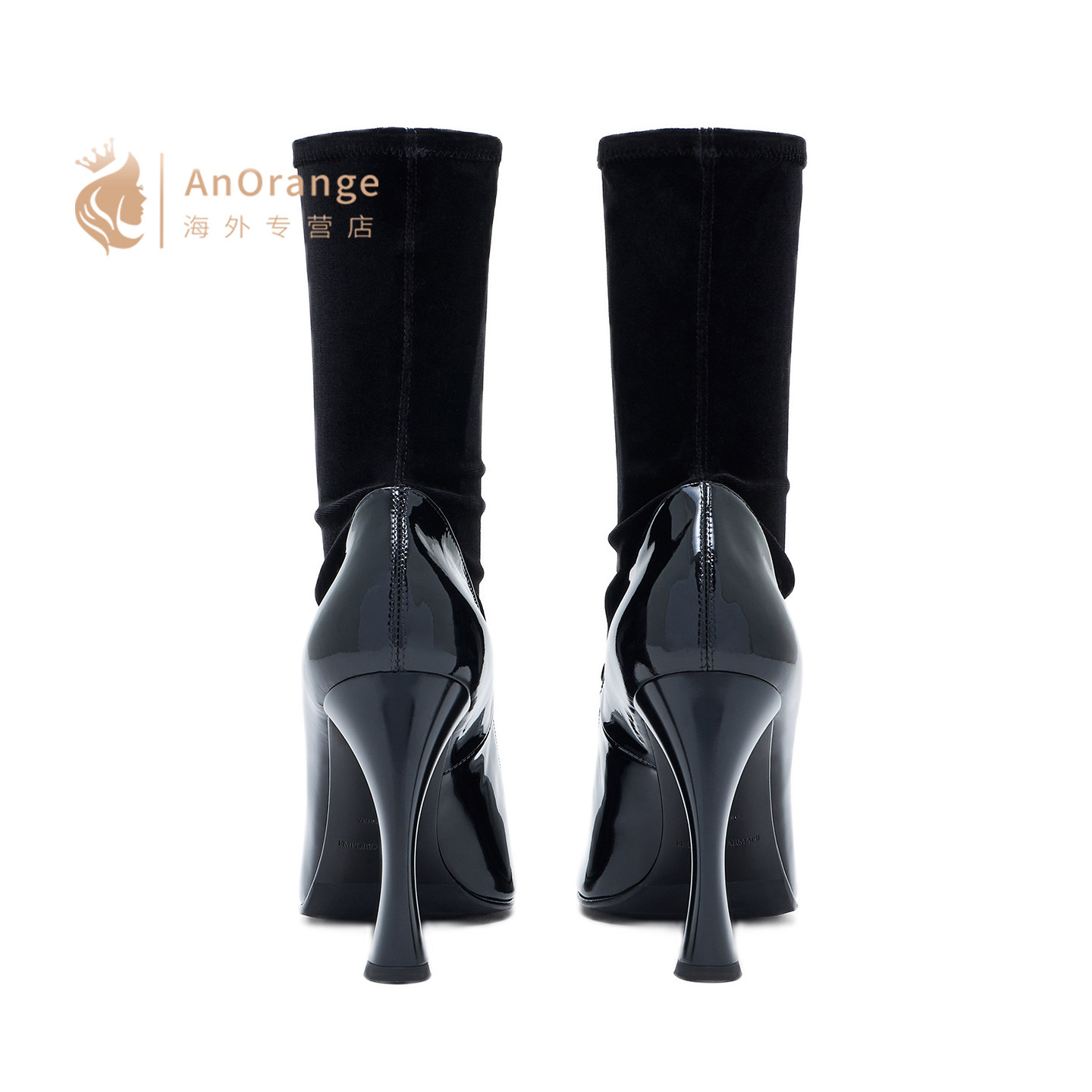 Armani阿玛尼EA女鞋2026新款黑色小牛皮天鹅绒圆头9.5高跟踝靴