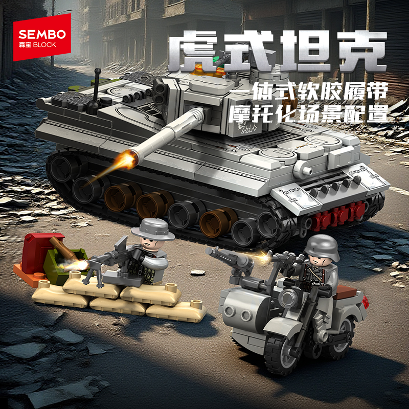 森宝积木二战德国虎式坦克苏联T34拼装模型玩具儿童拼图6到12岁男