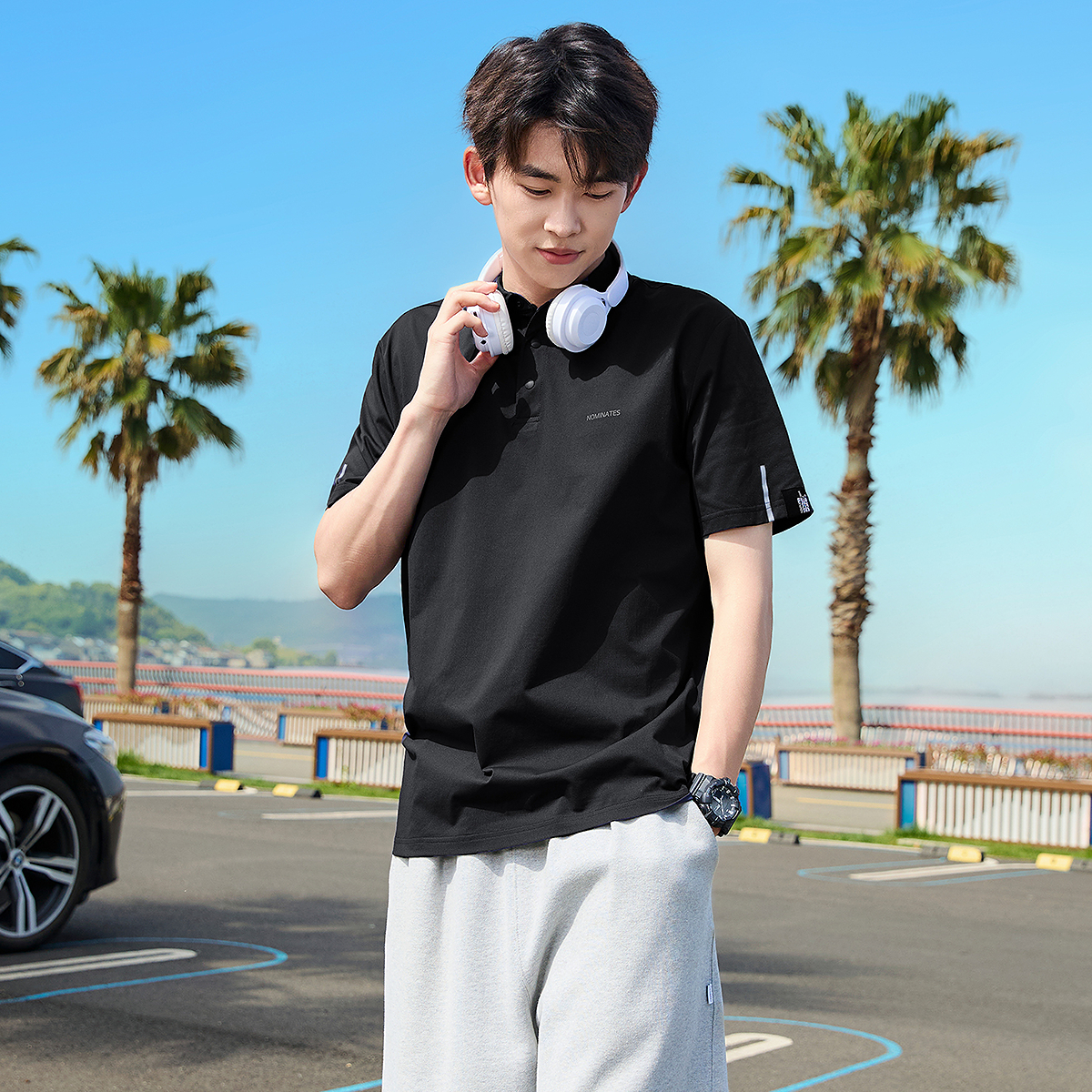 唐狮2025夏季新款男短袖Polo衫速干宽松翻领上衣学生纯色运动T恤