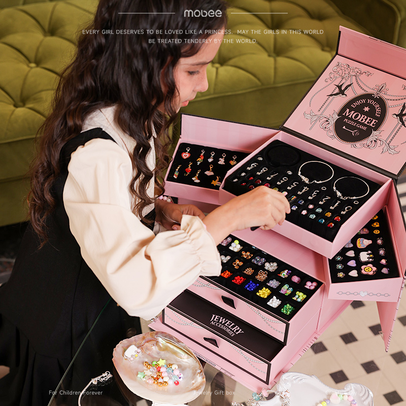 mobeeDIY手工串珠首饰礼盒手链儿童女孩子玩具女儿的宝藏美丽星堡