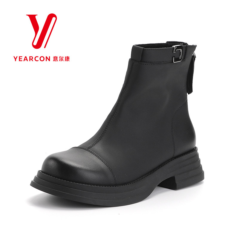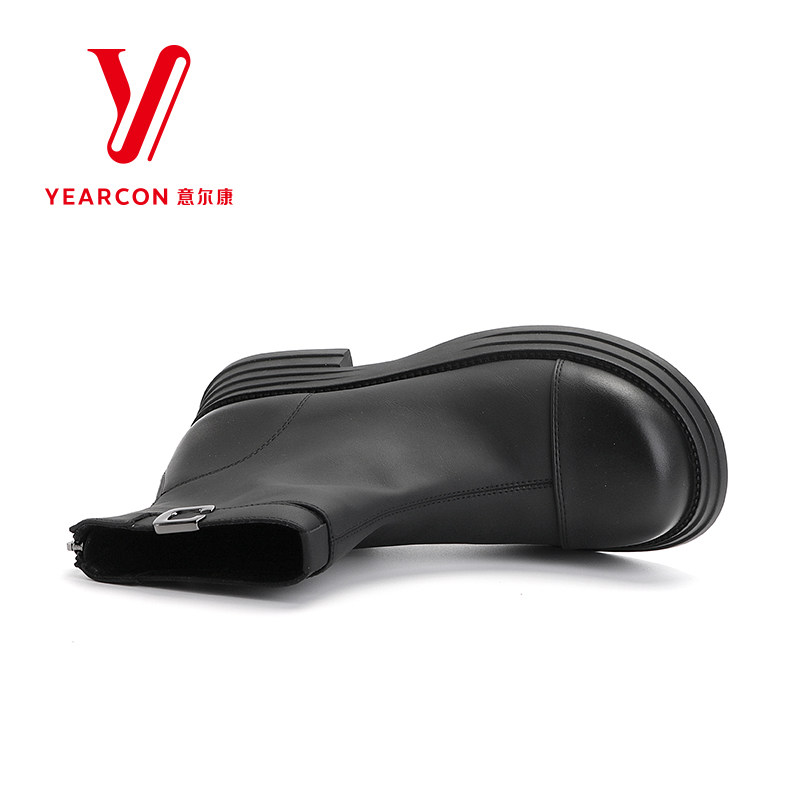 意尔康女靴2025新款秋季短靴女中跟单靴子粗跟切尔西靴时装瘦瘦靴