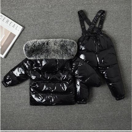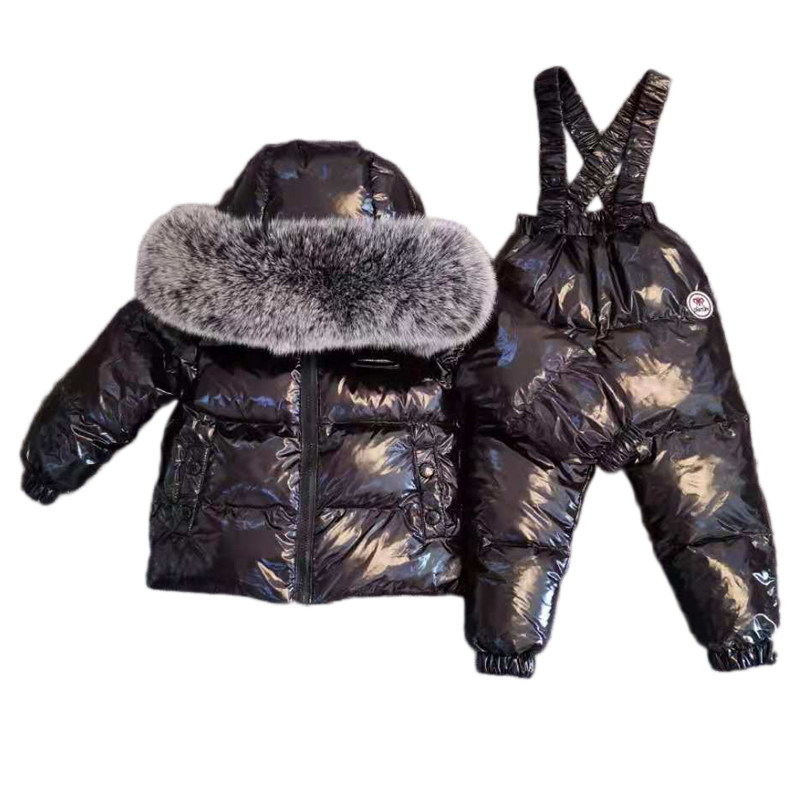 冬季新款儿童羽绒服套装宝宝婴儿背带裤套装男童女童貉子毛滑雪服