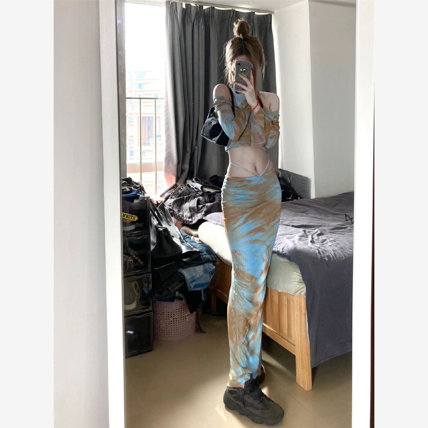 法式辣妹风油画扎染连衣裙子女夏季御姐风气质高级感长裙两件套装