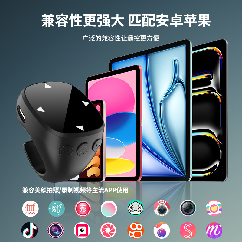 手机蓝牙遥控器拍照控制器拍摄看小说翻页刷视频适用苹果ipad抖音平板自拍杆懒人自动多功能电子书阅读器