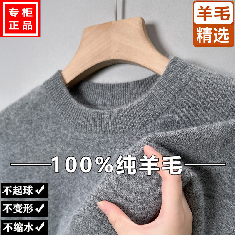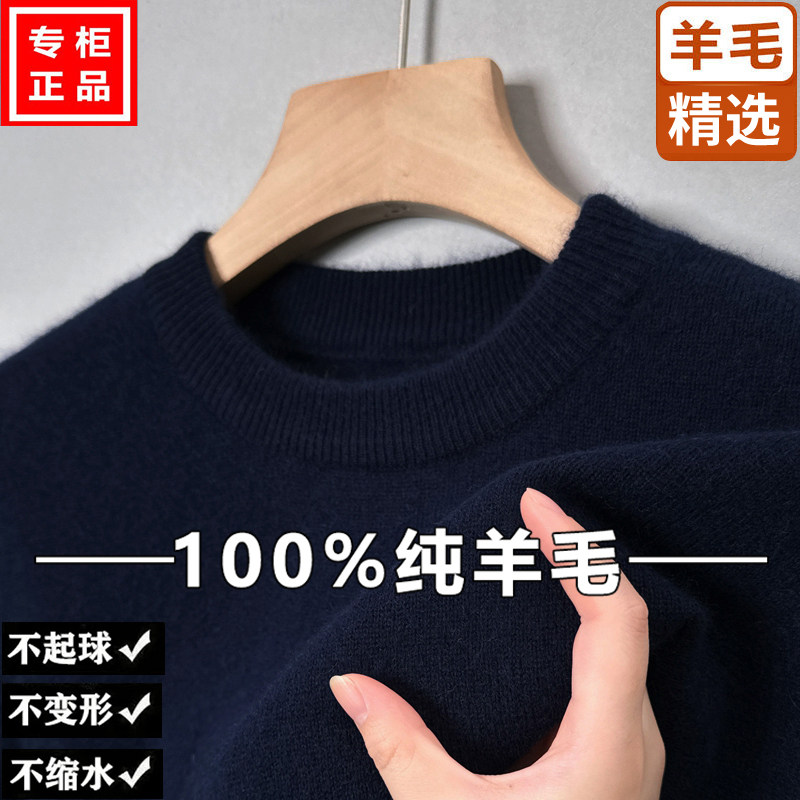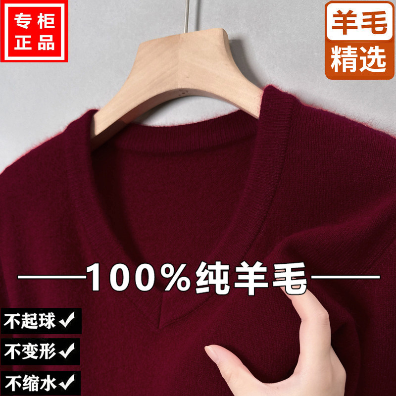 鄂尔多斯市羊毛衫男秋冬季加厚V领毛衣100羊毛男士针织羊毛打底衫