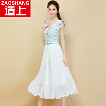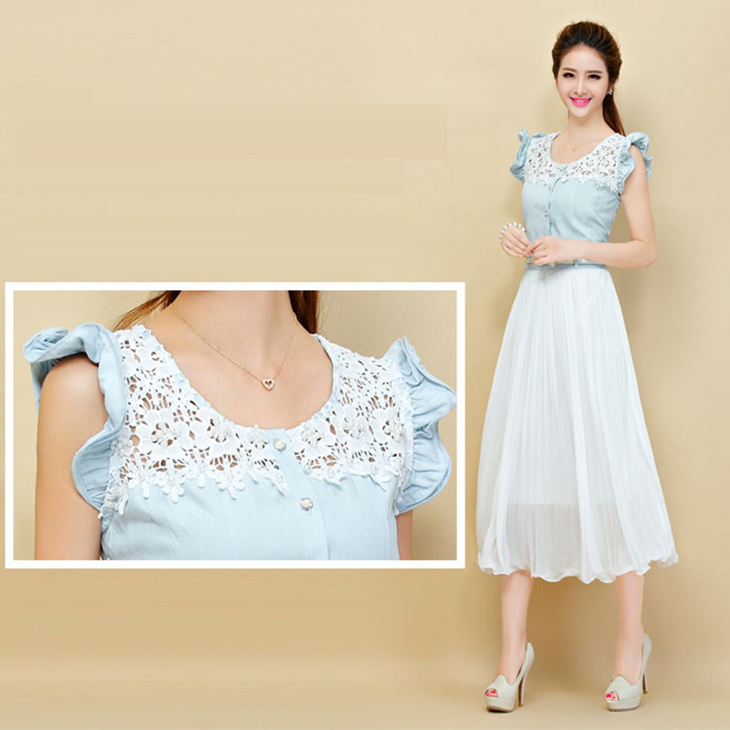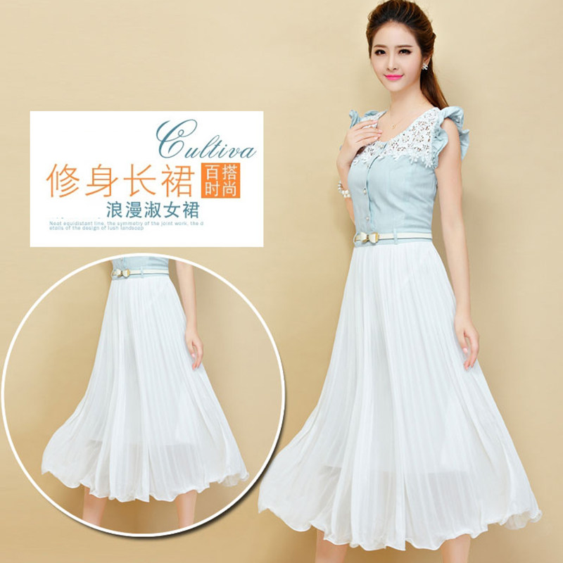夏季长裙牛仔大码淑女雪纺