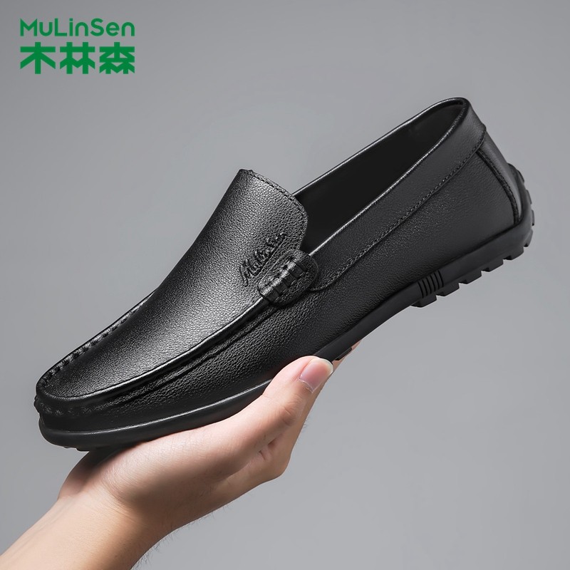 木林森男鞋2025秋冬新款柔软舒适豆豆鞋头层牛皮男士一脚蹬乐福鞋