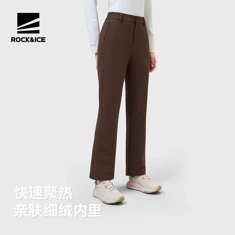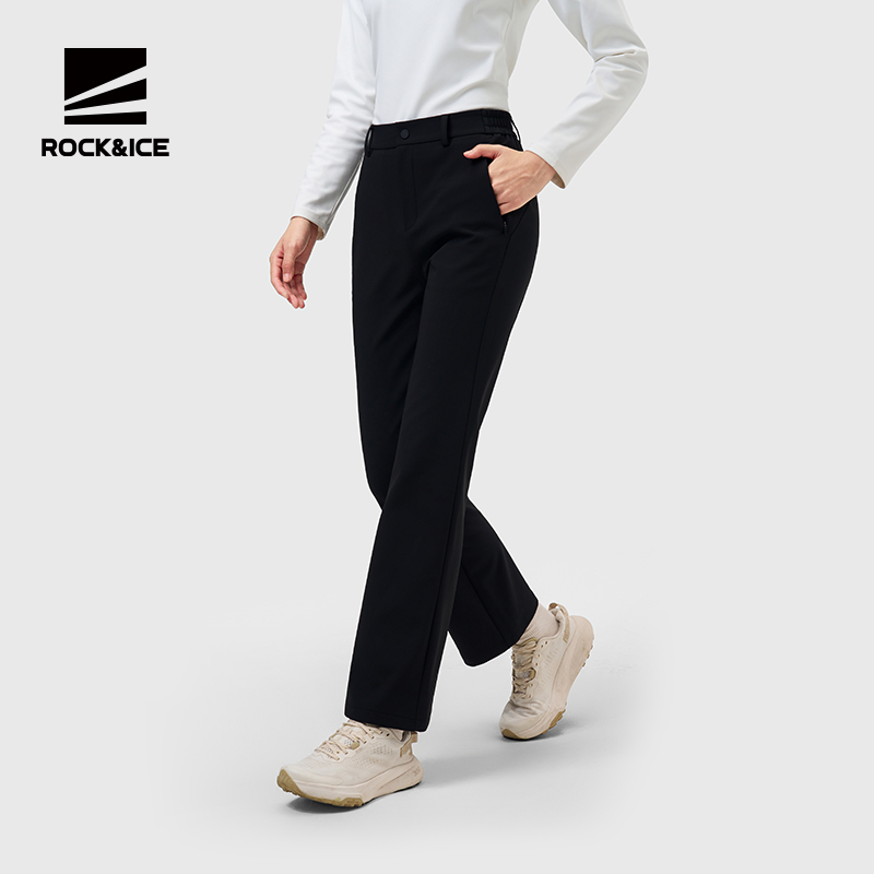 ROCKICE时尚微喇软壳裤女户外防风保暖徒步登山裤运动休闲长裤子