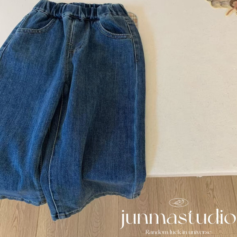 小屁股童装女童宝宝儿童秋装新款韩系小熊口袋牛仔裤直筒裤长裤子
