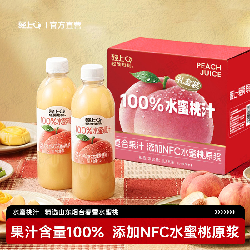 轻上0糖生椰椰汁椰子水苹果汁橙汁葡萄汁1L大瓶装年货节饮料礼盒