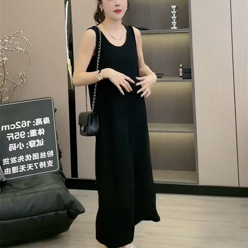 大码女装黑色吊带连衣裙女2024夏季新款宽松休闲无袖中长款背心裙