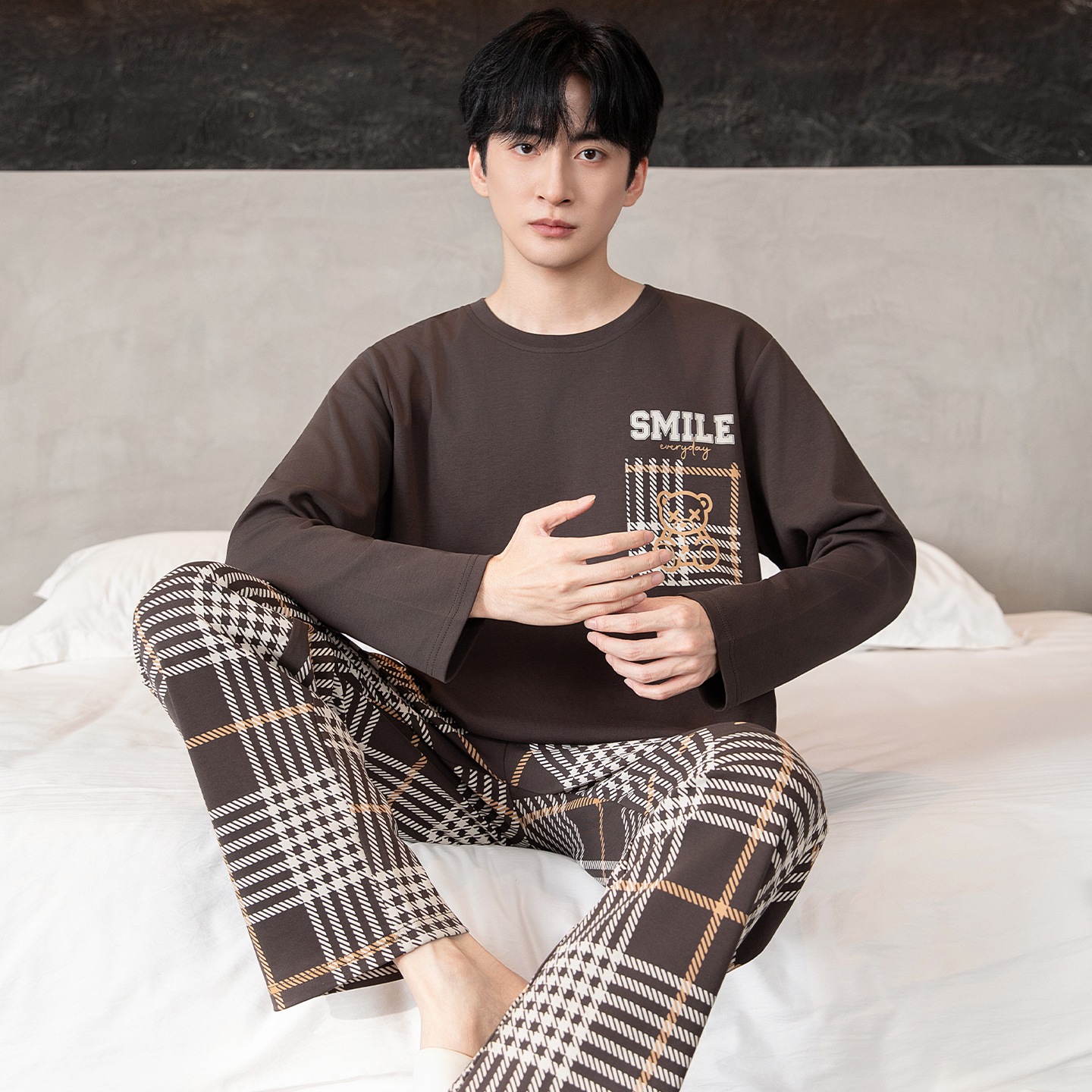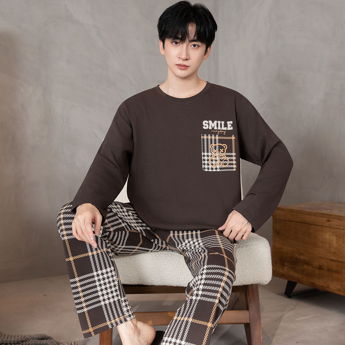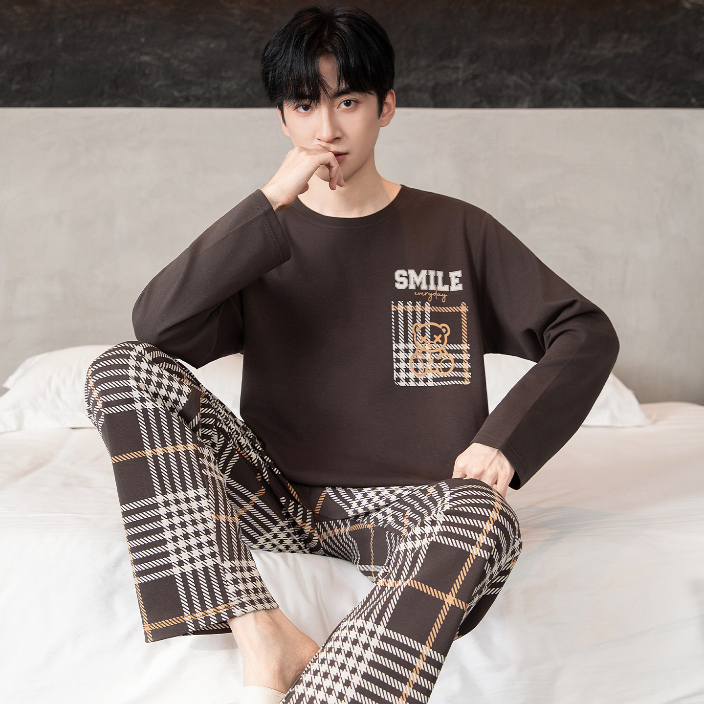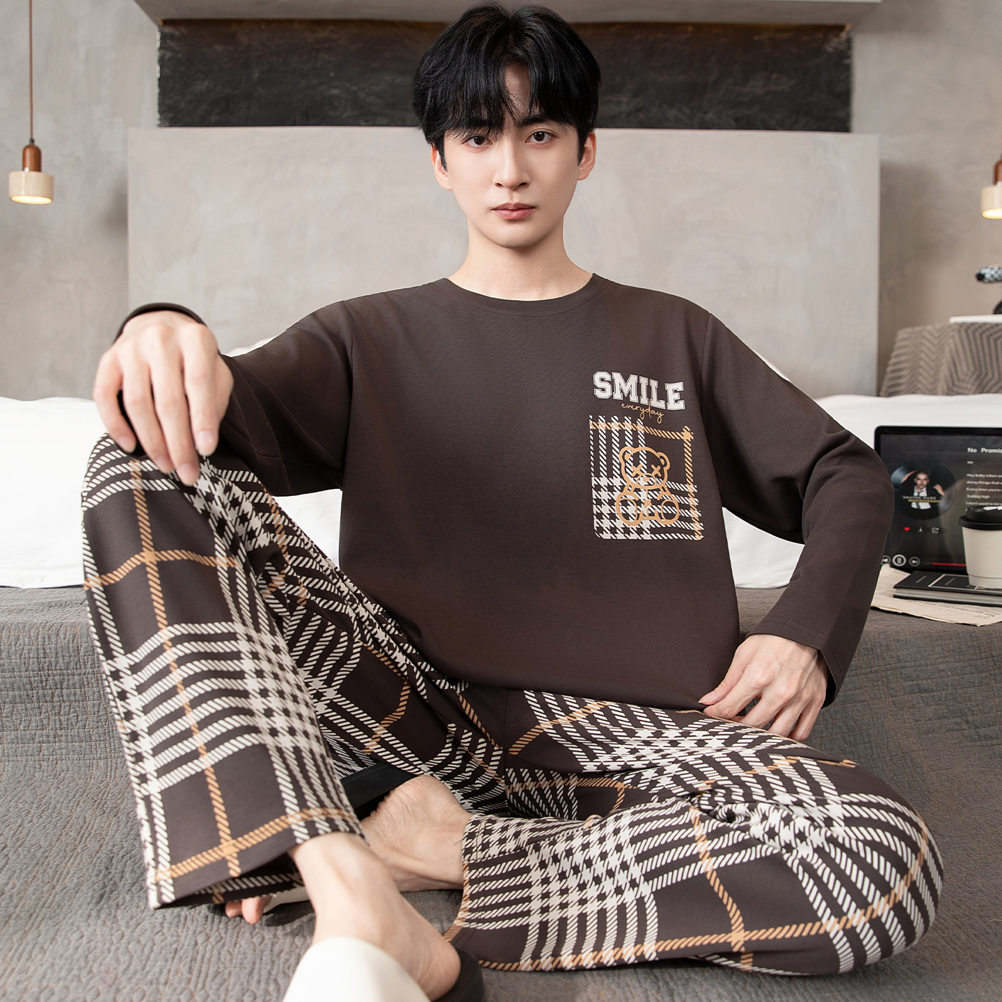 红豆男士睡衣春秋季纯棉长袖薄款大码青少年高中生大学生大童套装