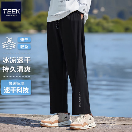 TEEK2025夏季休闲运动速干直筒裤冰丝男装透气潮牌青年阔腿长裤子