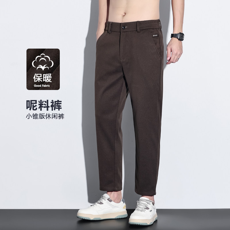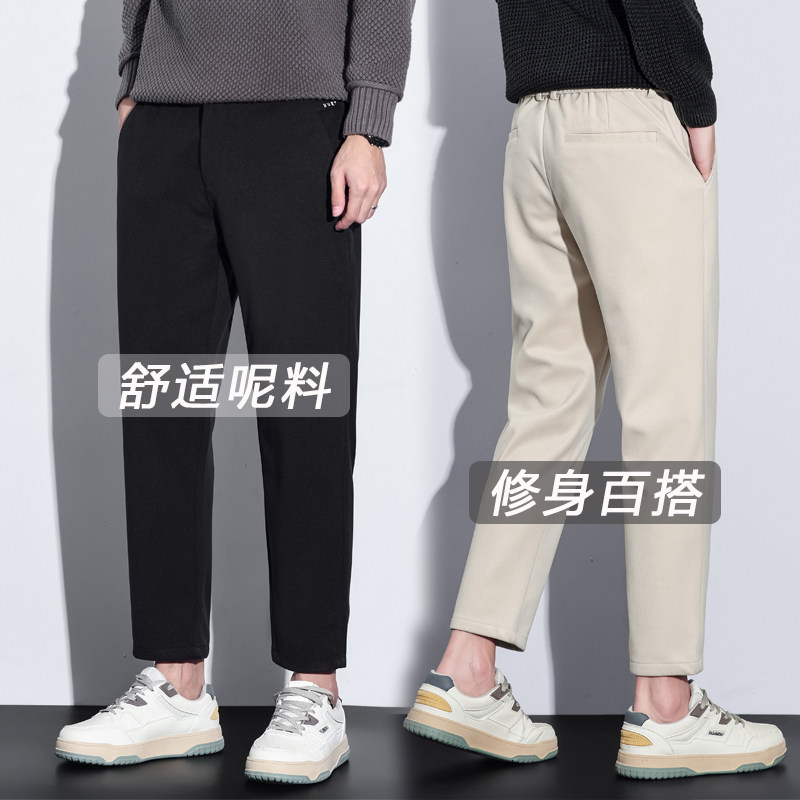 毛呢时尚垂感九分裤男厚款