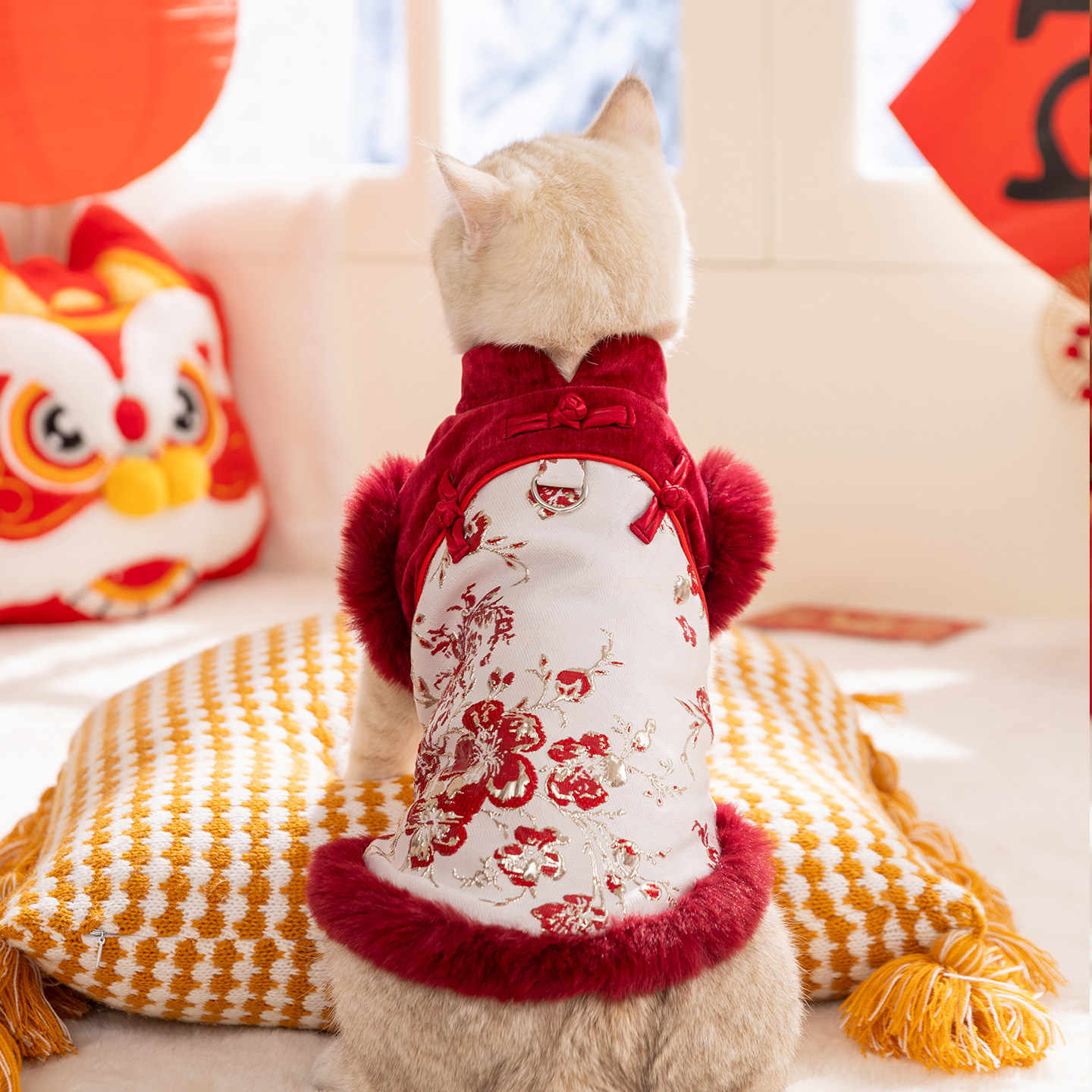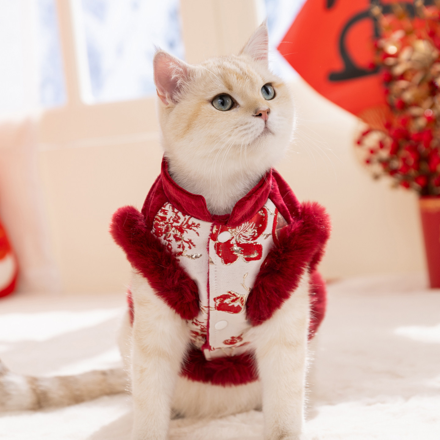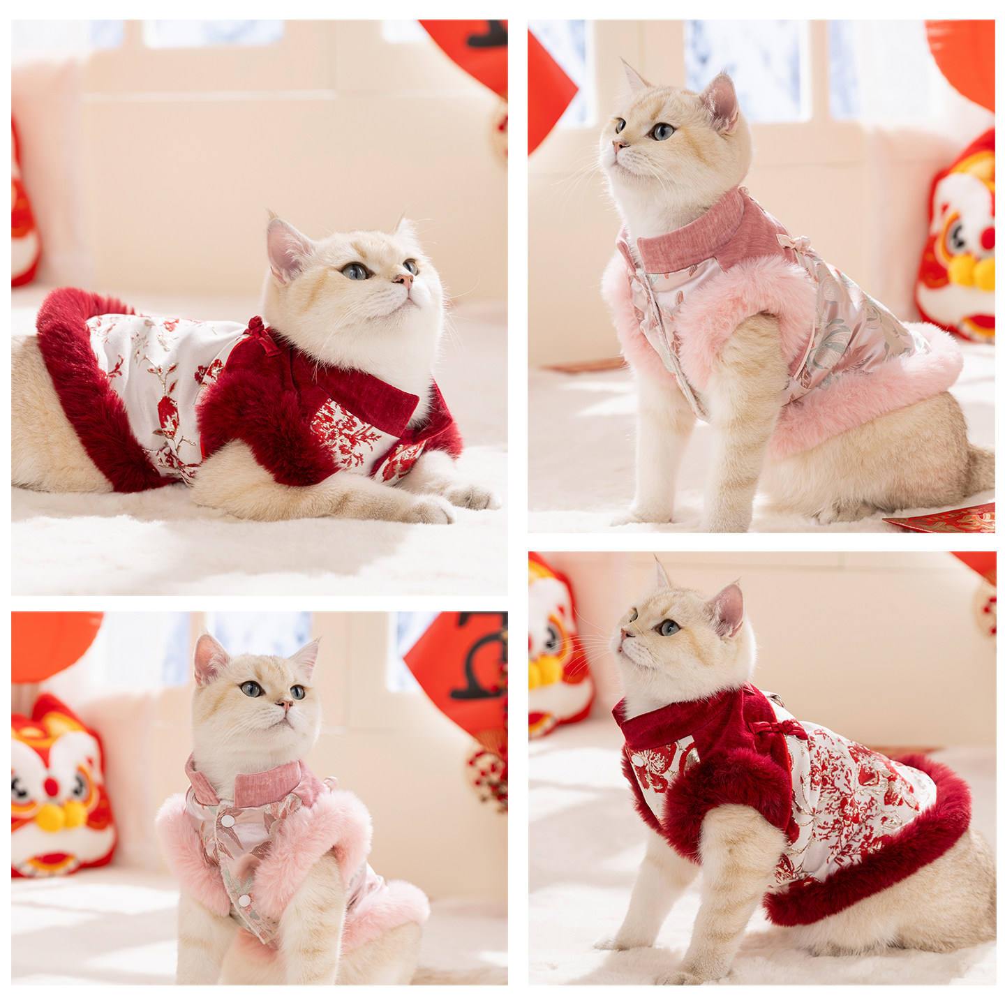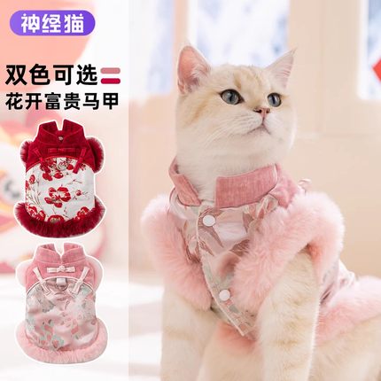 新年款猫咪衣服冬装保暖马甲宠物唐装背心无毛猫过年德文猫居家服